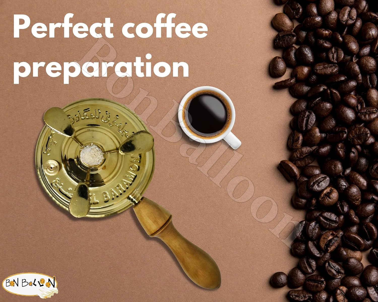 Item Description : Note : This Coffee Alcohol Burner Maker Does Not Come With Any Pot Ibrik Professionally Handmade Brass Tabletop Alcohol Burner With Metal Brass Handle.Now You Can Taste The Real Turkish Coffee This package includes Qty (1) Brass tabletop alcohol burner Turkisk coffee maker.Qty (1) Brass flame cover.Qty (1) Plastic filling flask aid Handcrafted In Egypt!!! Our Items Are 100% Handmade By Highly Skillful Craftsmen In Egypt!!Important Notice : The Color And Design Of The Wooden Hands Is Usually Changeable We Cant Make Sure That You Will Get Identical Color And Design As Pictures Shown In The Listing But In Case Of Changing You Will Get One Of Those Shown In The Picture Bellow. In Case Of Buying Complete Set , You Will Receive Of Course The Whole Set With One Design And One Color Condition: 100% NewQuantity : 1 pcs Color : Gold Tone Weight (Approx.) : 353 gm= ( 12.45 oz ) Material: solid brassSize (Approx.) :Width Without ( The Handle)=5.2 Inch (13 cm) Height : 5 Inch=12.5 cm Used to make Turkish Arabian coffee (without electricity) With such real solid hard brass this burner will last for years and yearsThe ideal way to make thick Turkish coffee foam Amazing detail and craftsmanship. Will definitely add a decorative look to your corner. Can be used anywhere any time no need to electric source (camping -home) How To Serve A Great Turkish Coffee ?? 1. Measure the amount of cold water you will need. 2. Place your pot of water on the stove and turn the heat to medium-high (just until the water heats up). 3. Add about 1-2 heaping tea spoons of coffee per demitasse cup. Do not stir it yet. Just let the coffee "float" on the surface because if you stir it now you will cause it to clump up.