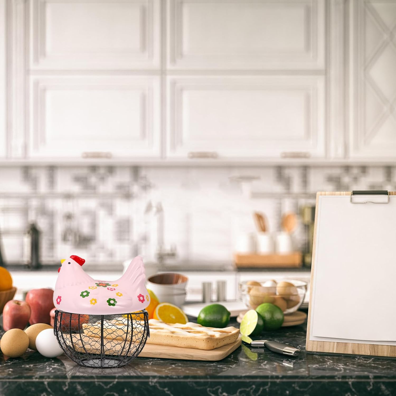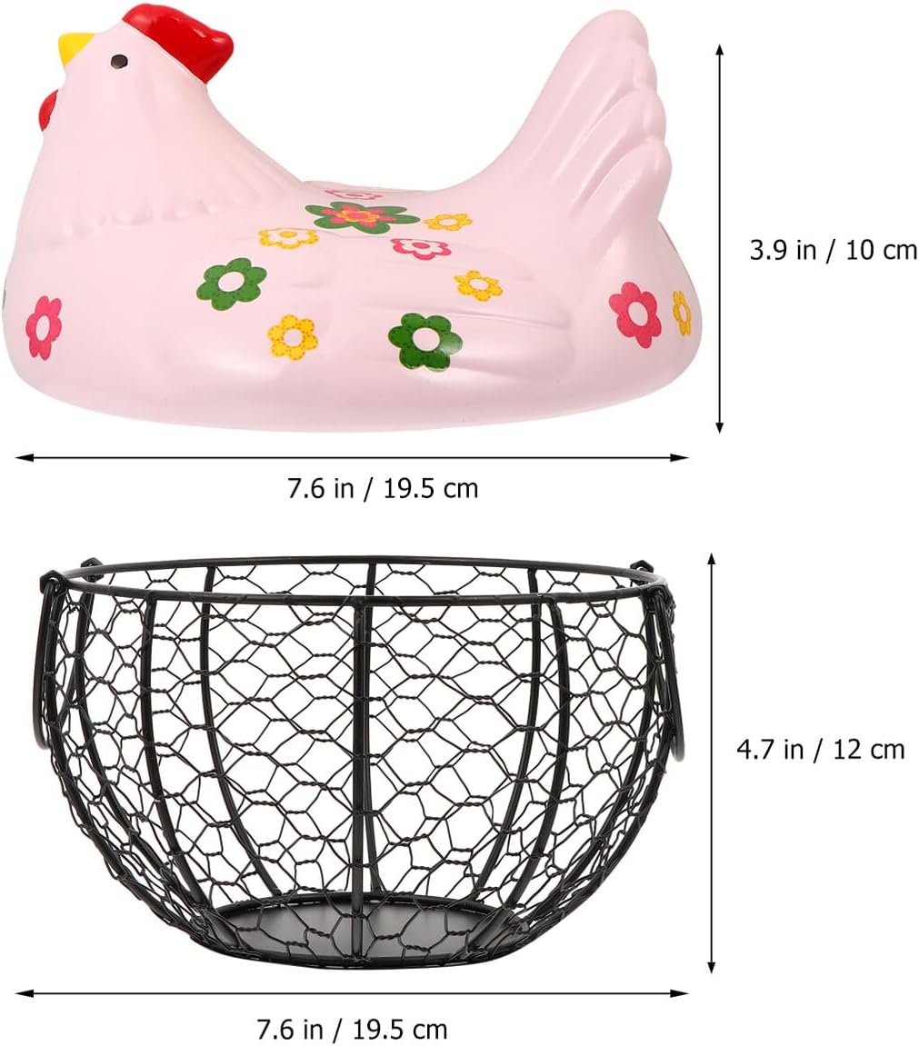 Package Include 1 x iron egg basket Features - Material: Ceramic, iron. -Product Info:Storage basket - Color: Pink. - It features large capacility. Approximately 25pcs eggs can be placed in the basket Storage Basket. - Sturdy iron and thickened ceramic material make the storage basket and practical. - The lovely hen shape and bright color make it an home tabletop decoration. - It can be used as an egg basket in the kitchen or restaurant, practical and fashion Vegetable Basket. - Can be used as an egg basket. Also can be used as desktop sundries storage basket Iron Art Storage Basket.Goods InformationIron Egg Basket The product in a creative design is very useful and practical as well.Egg Iron Basket This storage basket is very perfect for storing dried fruits, fruits, eggs, snacks and others.Basket for Kitchen The perfect workmanship of this basket will give you an excellent use experience