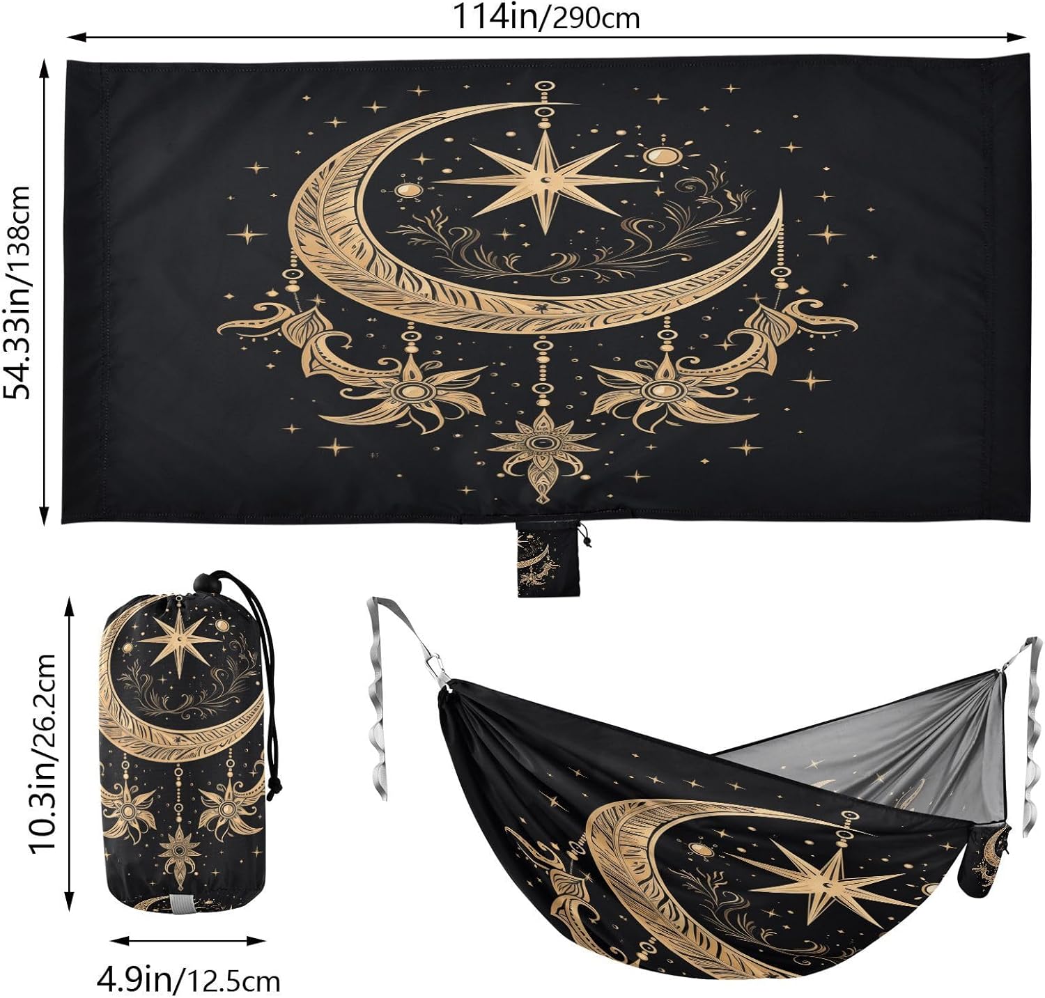 Reliable Outdoor Relaxation This practical hammock delivers comfort and convenience for outdoor enthusiasts using quality materials and thoughtful engineering. Technical Details Material: 100% polyester (210T taffeta body; 600D polyester straps) Hardware: Aluminum carabiners Load Capacity: 500 lbs (227 kg) Packed Size: Approx. 7 x 5 inches (18 x 13 cm) Durable Construction Reinforced triple-stitched seams at stress points Quick-drying material Practical Applications Camping and backpacking Hiking rest breaks Beach and park outings Family relaxation Travel and festivals Package Includes 1. Hammock 2. Straps (2m each) 3. Carabiners 4. Storage sack Designed for Easy Use Sets up in minutes without tools. The balanced design provides stable support, while the breathable fabric prevents overheating during extended use.