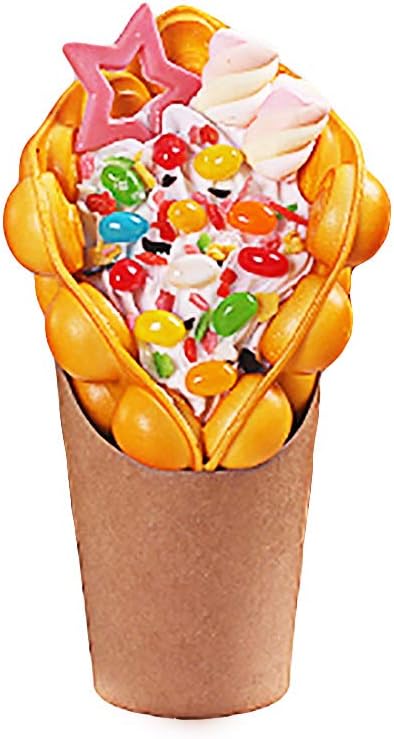 This Amazing Dummy Egg Puffle waffle is a great solution for any kitchen CAFE or RESTAURANT. With this Dummy, you can show the customers how the product will look like. Your clients will surprised with incredible PUFFLE EGG Wafers. Puffles This unique Bubble Waffler Maker creates a large hexagon shaped waffle which has a unique bubbled texture. These delicious waffles, sometimes called egg waffles or Eggettes have crispy golden outsides and light, soft interiors. An Eggette is a kind of spherical pancake or ball waffle popular in Hong Kong and Macao. The food item is also referred to as an egg puff, egg waffle, bubble waffle or by its Cantonese name, Gai Daan and is made from eggs, sugar, flour, and light evaporated milk. They are best served hot, and often eaten plain. They can also be served with fruit and flavors such as strawberry, coconut or chocolate. They are sometimes referred to as "Hong Kong cakes" in Chinatowns across America, especially in New York.