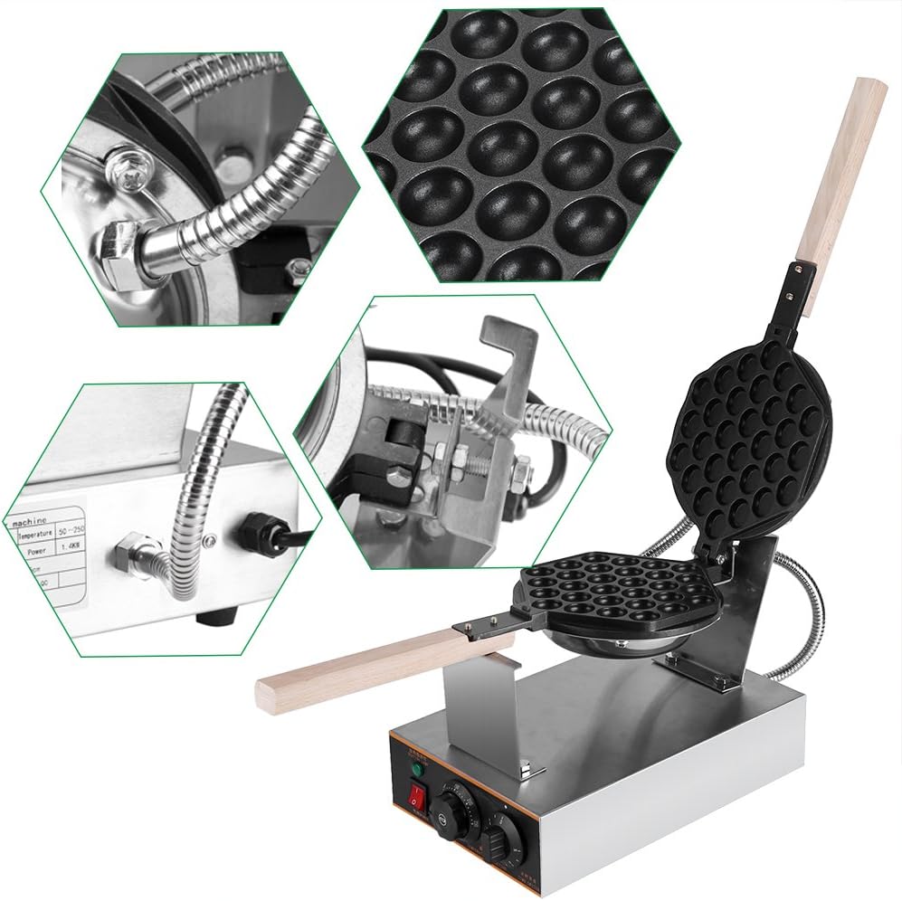Make sugar waffle cones with this professional waffle cone iron! This machine will be a great addition to your business if you are specialized in ice cream. Lovely design and high-quality materials ensure the long service life of this appliance and make it ready for extensive business use. The machine comes with a couple of wooden rollers for cones shaping.