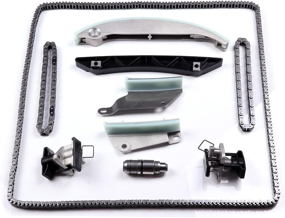 Fits the following vehicles:for Chrysler 300 2.7L 2008for Dodge Magnum 2.7L 2008for Dodge Charger 2.7L 2008for Dodge Avenger 2.7L 2008for Chrysler Sebring 2.7L 2007-2008Package Include: 1x Timing Chain (272 links - 1/4" pitch) 2x Cam Chains (secondary) 1x Guide Rail (left - long) 1x Guide Rail (left - short) 1x Guide Rail (right - short) 1x Guide Rail Pivots (right - tensioner rail) 2x Tensioners (upper) 1x Lower Tensioner