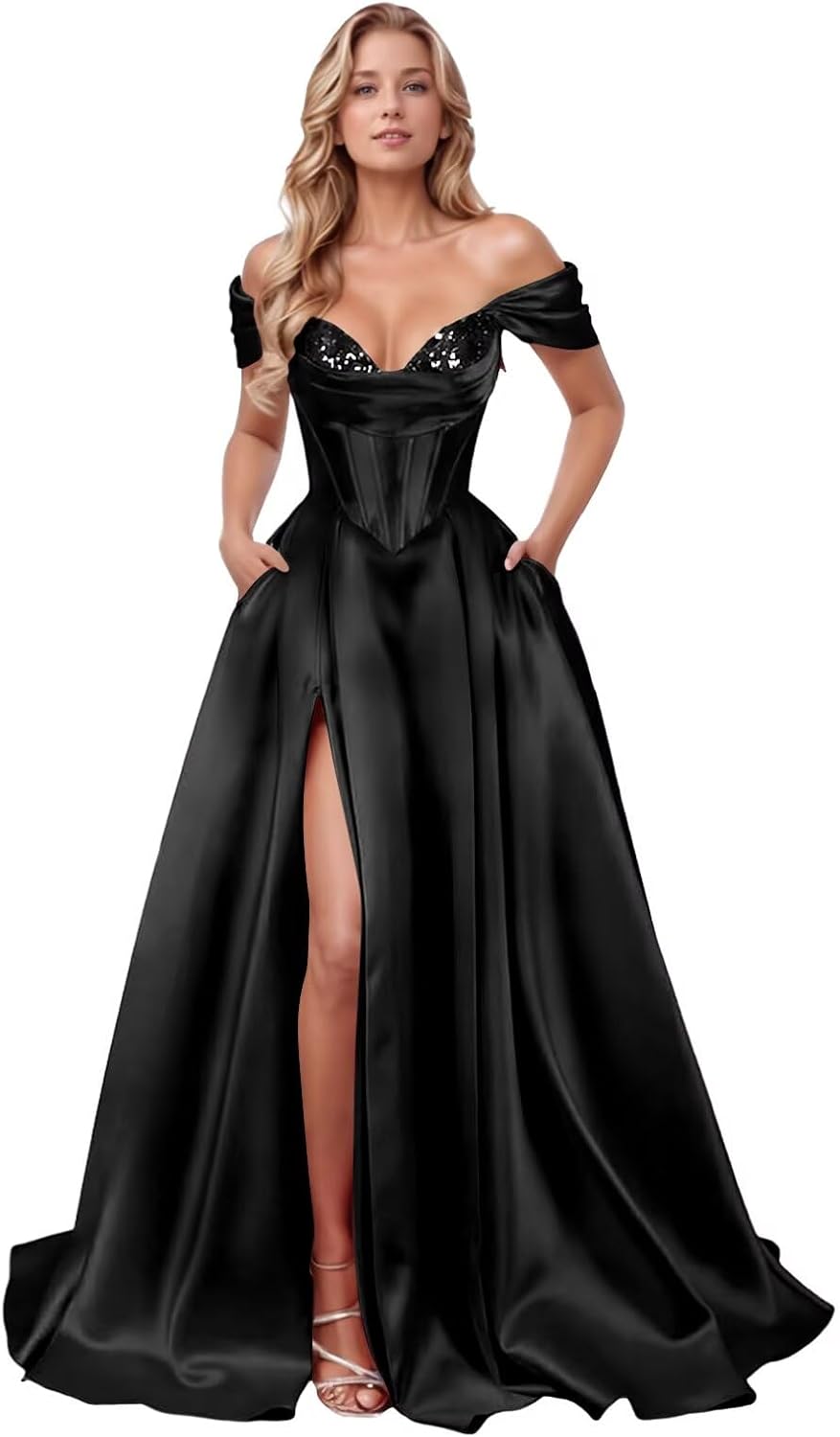 Strapless corset prom dresses for women 2025,off shoulder ball gowns for teens plus size,a line formal evening party gowns with pockets,stain wedding guest dress with slit,floor length.Features for prom dressOff The Shoulder Satinwith PocketsStrapless corset Wash instruction●Hand wash●Do not machine wash and do not bleachThis stain prom dress is perfect for ball gown,prom gown,evening gown,holidays,formal evening party gowns,wedding guest dress,carnivals,formal gown,pageant,graduation,ceremony,anniversary,birthday party,garden weddings,beach parties,special occasion and other formal and semi-formal occasions.Don't find suitable standard size and colour? Don't worry, because we can custom size free for you. Please provide us below measurements to help us make the dress fit you better.please complete following details:1. Bust:____ inch or ___ cm.2. Waist:____ inch or ___ cm.3. Hips:____ inch or ___ cm.4. Hollow to floor(with shoes):____ inch or ___ cm.5. Heel Height:____ inches or ____ cm.6. Event date:____ .