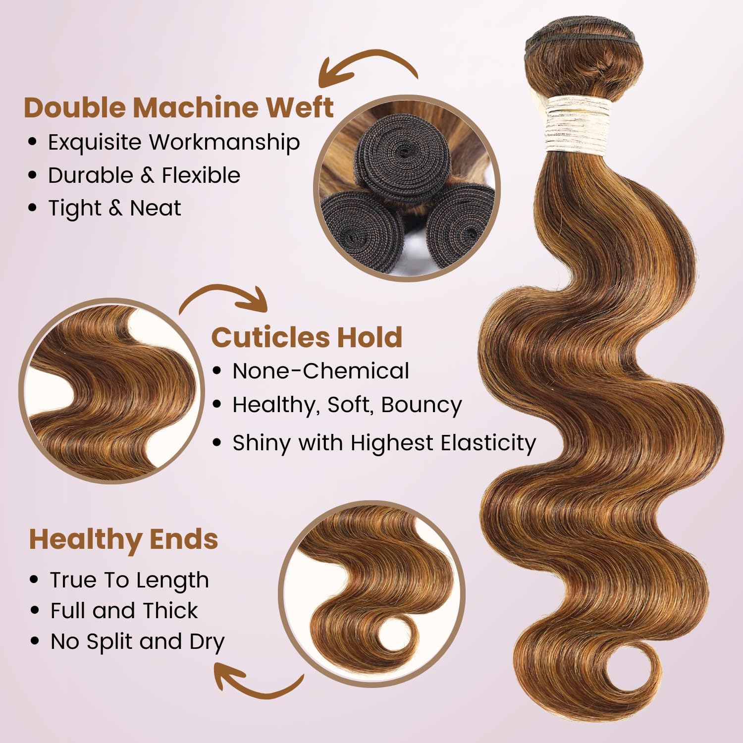 | Material Features | Made of 12A grade 100% unprocessed Brazlian virgin Body Wave human hair, cut from young donors directly. Silky softness and long-lasting durability. Worry-free of tangling and shedding. |