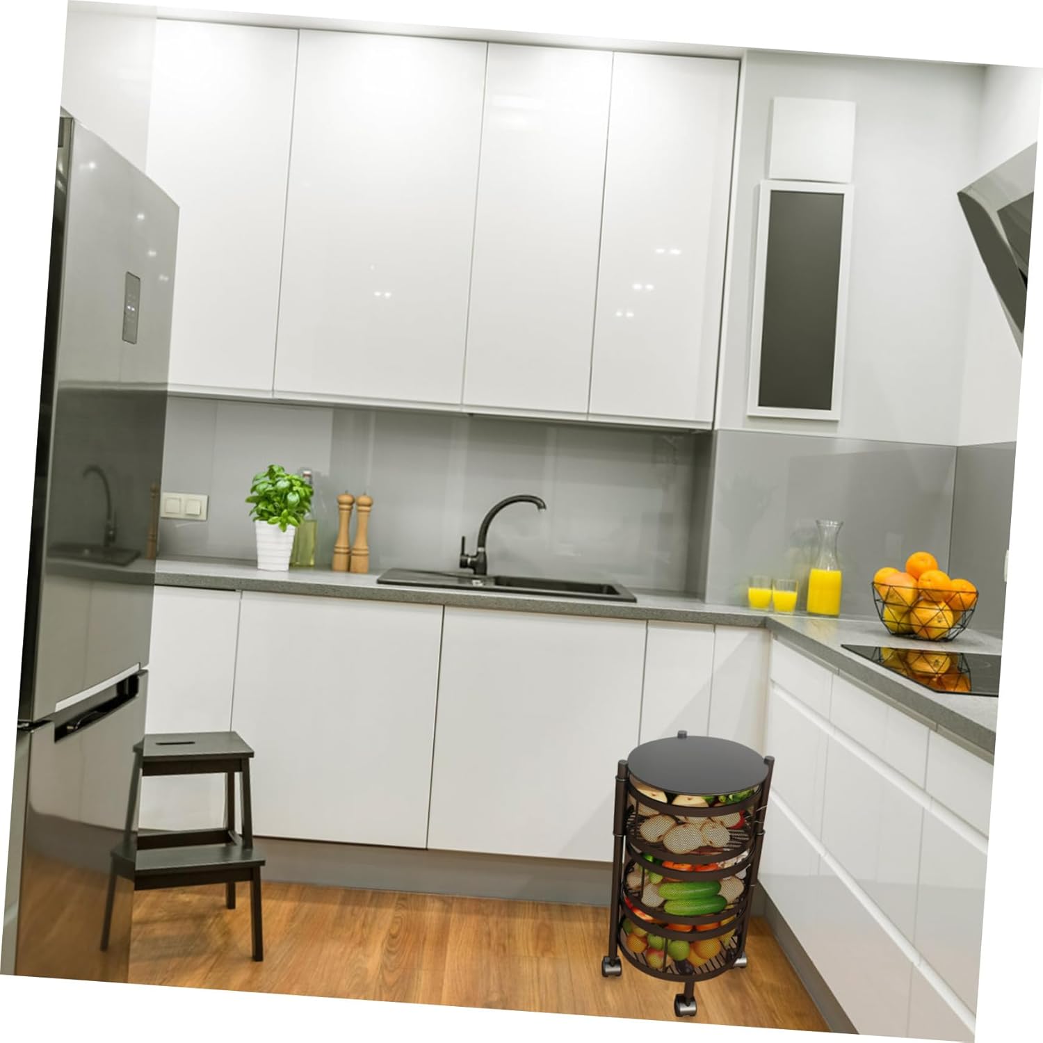 Package Include 1 x storage shelf Characteristics -Color: Black Sundries Shelf -Size: About 60.00X33.00X33.00cm/23.58X12.97X12.97in Installation Rack -Material: Iron Vegetable Storage Rack -Reasonable design, it is space-saving and won't take much space in your house Storage Shelf. -Excellent iron material ensures the and durability for long-term use Kitchen Accessory. -The rotating design, with pulley and brake, make the storage rack and can be used anywhere Storage Shelf. -Suitable for long-term use, materials, provide the bearing capacity Rotating Storage Rack. -Large capacity, it is home sundries' storage, which can save much space for you Floor Storage Holder.Goods InformationMultifunctional Commodity Shelf Are you looking for a , yet shelf? Are you in search of a multifunctional shelf that can do multiple jobs at once? , ! Our large capacity storage shelf must meet your needs.Kitchen Accessory It is one of for you, do not hesitate anymore!