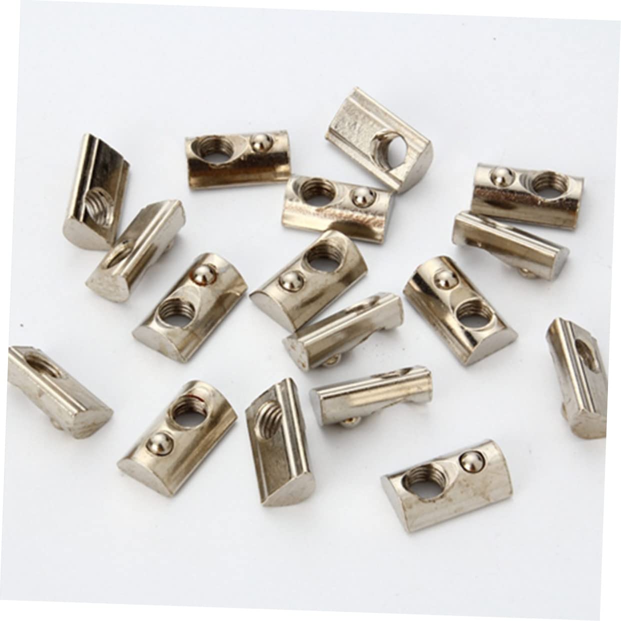 Package List 2 pcs x 100 Features - Size: 1.50X0.90X0.90cm;/0.59X0.35X0.35in; T Nut Block - Material steel T Nut for Aluminum Profile. - ColorSilver Roll-in Spring T Nut.Goods DescriptionSpring Loaded Nut 100pcs Steel Round Roll In Spring Sliding t Slot Nut Slot Profile Accessories