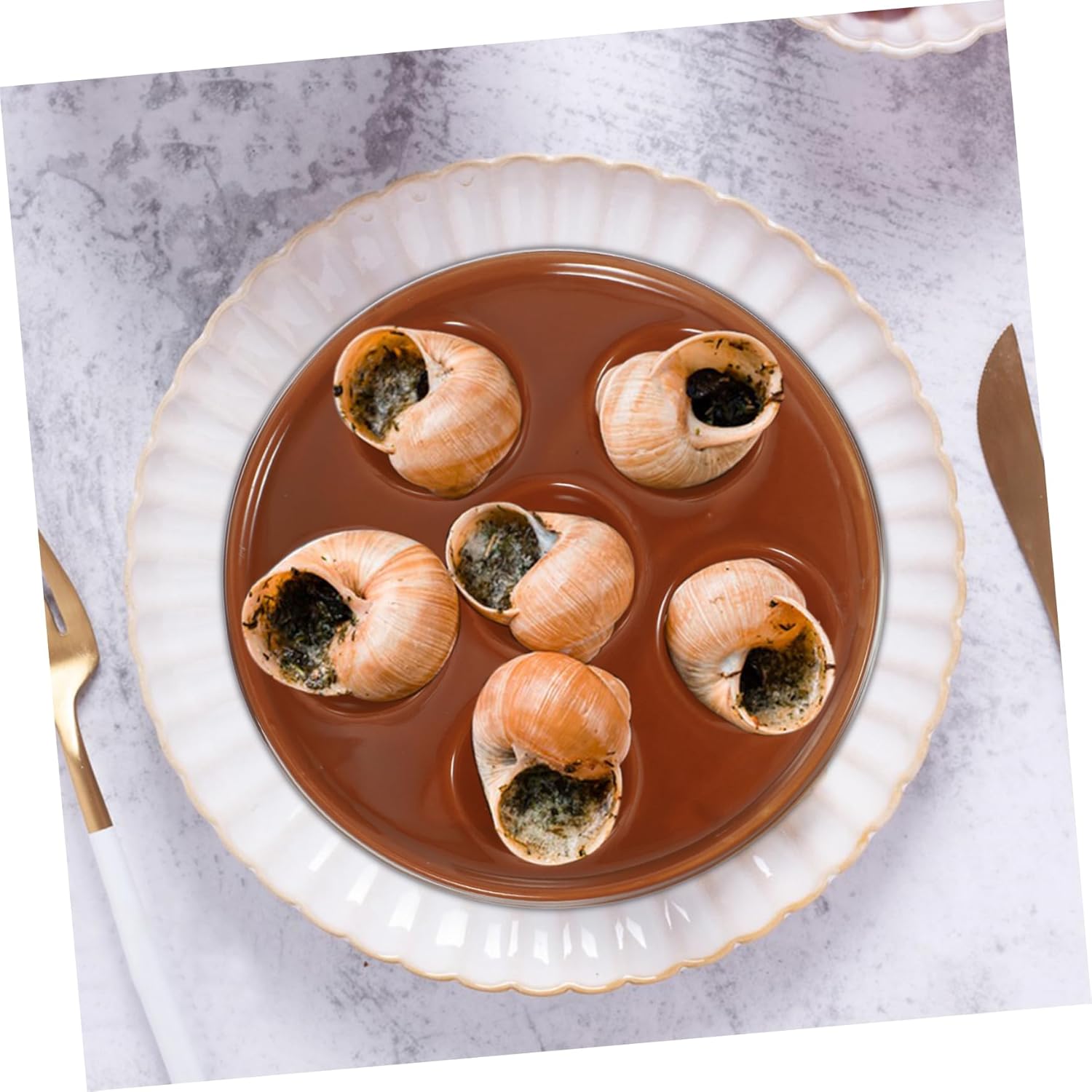 Package List 2 x Baking Pans Features -Material: Ceramic oven cookware -Color: Brown Ceramic Baking Plates -Size: Approx. 16.50X16.50X2.60cm / 6.48X6.48X1.02in ceramic bakeware -The smooth does not hurt your hands, and it is safer to use escargot dining -Applicable for home, hotel, restaurant and party, a good helper for you ceramic pans. -It allows for easy escargot release and easy cleaning after every cooking process escargot dining dish. -Can be used as a housewarming present to your friends, they will ceramic baking dish. -You can bring the delicious taste of the to your own kitchen and add your own bakeware.Goods Descriptionoven escargot plate Molded pans have a non-stick coating that makes cleaning simple and easy! It is specially designed for making octopus and snails etc.baking trays It really is a great octopus grill plate to choose from.escargot pans This product is made of ceramic material and is