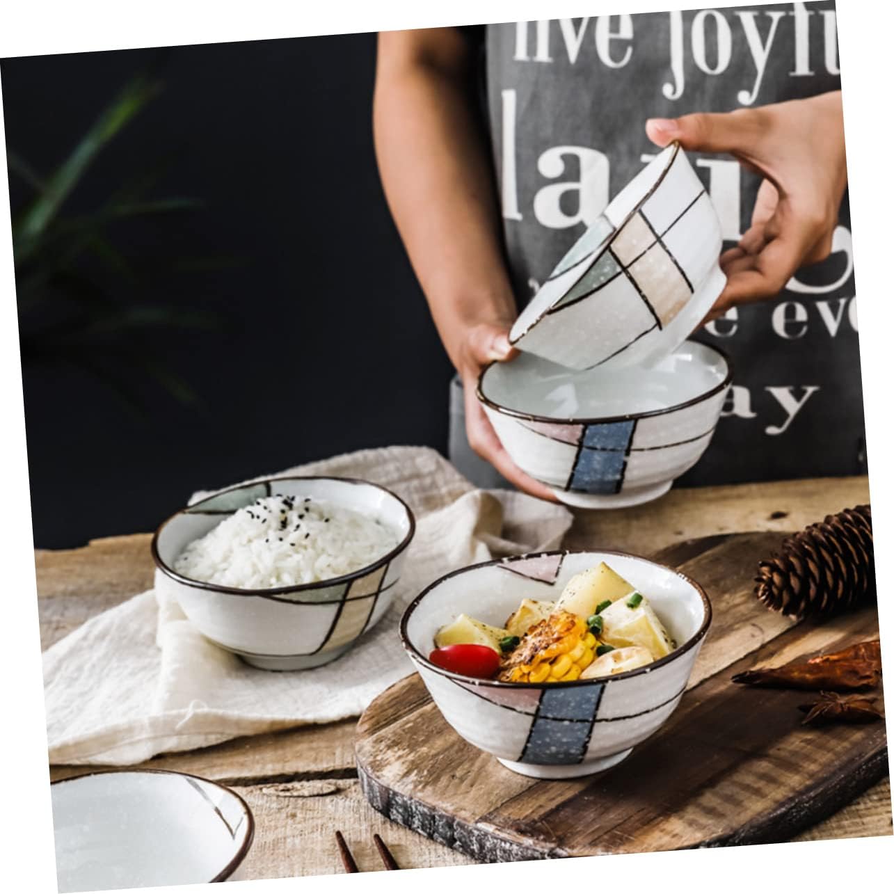 Package Include 4 x bowl Features - Material: Ceramics Restaurant Bowls. - Size: About 11.00X11.00X6.00cm/4.32X4.32X2.36inch Home Ceramic Tableware. - Color: Assorted Color Creative Soup Bowls. - A home essential tool, can store soup, noodles, fruit, salad, etc Salad Bowl. - With fine craftsmanship, not easy to wear and tear, very in use Classical Soup Containers. - Smooth surface, easy to clean, you will like this food bowl Kitchen Bowl. - Ideal for cold or hot meal, and great for soups, rice, etc Ceramic Rice Bowl. - Made of materials, and for a long time use Soup Bowl.Goods DescriptionKitchen Bowl Easy to clean and store, it is suitable for home, office, hotel, restaurant, food shop, etc.Restaurant Bowls Great for holding your soup, snacks, fruit salad, noodle, vegetable salad, etc.Salad Bowl The home kitchen bowl is made of material