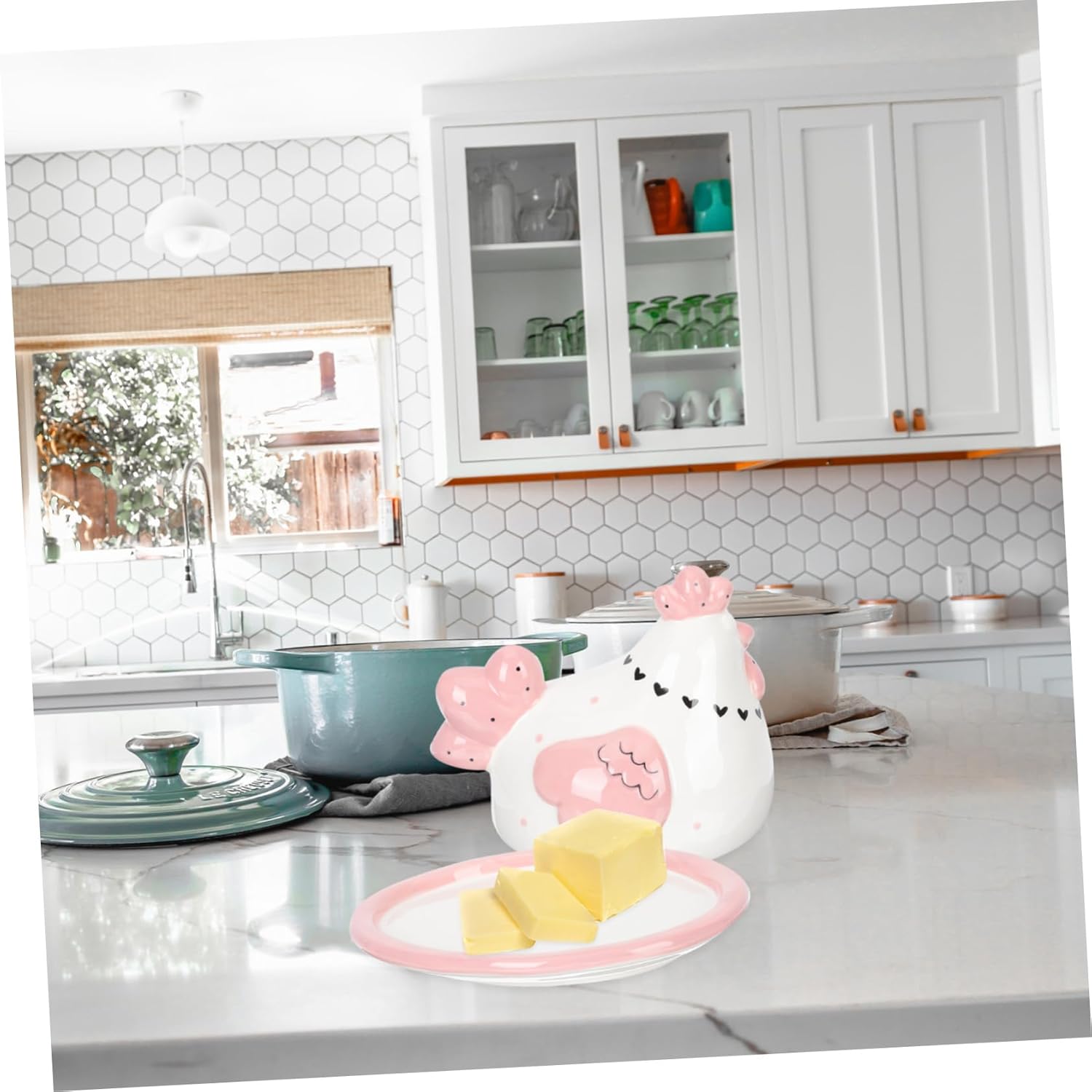 Package List 1 x Butter Box Characteristics -Product Info:Ceramic storage box -Color: As Shown Chick -Size: 18.00X15.00X15.00cm/7.07X5.89X5.89in snack boxes -Material: Ceramic butter holder with lid -Made of ceramic , practical and for use unique butter dish. -Lovely chick shape design, making your kitchen charming and impress your guests chicken themed butter dish. -Proper size, convenient access to your butter right when you need it Adorable . -Come with a lid, it can keep your food or butter way and insects, safe and butter container for fridge. -This butter box can be used to store butter, can also be used to store dessert, etc butter keeper chicken.Goods InformationEmbossed This butter plate can be used to store butter, can also be used to store bread, etc.butter tray This butter container is suitable for most brands of butter.butter containers Made of and material.snack boxes The simple design, can make your kitchen, dining room and so a higher level