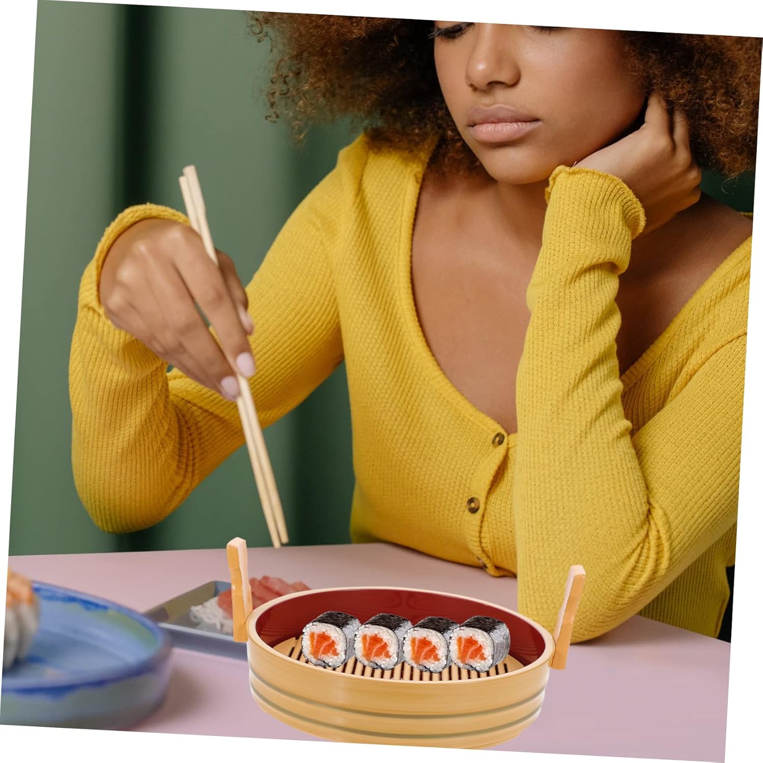 Package List 1 x Food Plate Characteristics -Product Info:Sushi barrel -Color: As Shown Restaurant Sushi Plate -Material: Plastic sushi tray - You can send it to your families and friends as a , they will be happy sushi boat serving tray. - Sushi and sashimi tray, it is perfect for restaurant, home, hotel and so on sushi serving tray. - It is made of high-grade material, which can be used for a long time sushi sashimi plate decorative. - It can be wonderfully used as a food display plate, which will increase your appetite greatly Sushi Dish. - manufacture makes the surface smooth, and it is easy to clean with water sushi tray sushi plate.Goods DescriptionRestaurant Sushi Dish Suitable for restaurants, hotels, special parties and family dinners.Sushi Dish Imitation wood design, it will bring much convenience to you.sushi platter Perfect for storing sushi, sashimi, and so on.sushi serving tray This is a premium sushi plate, and practical