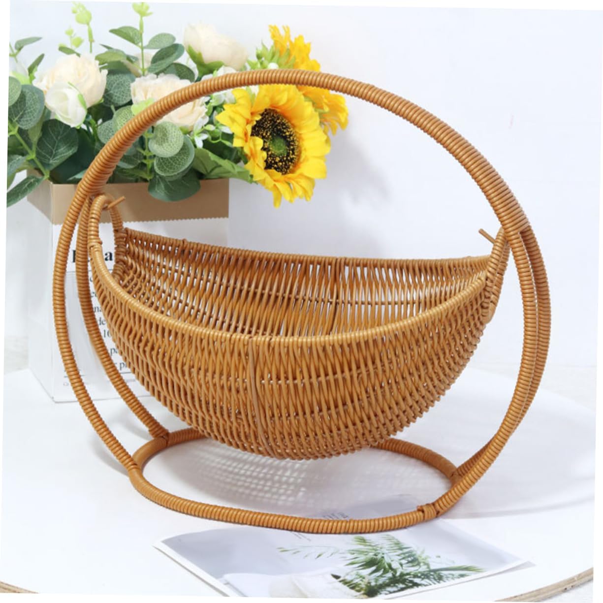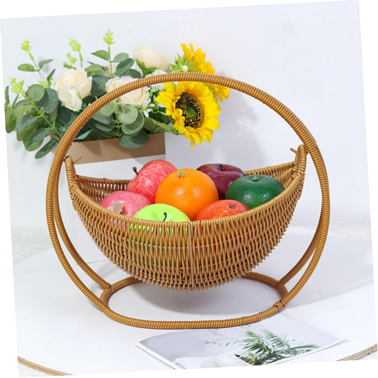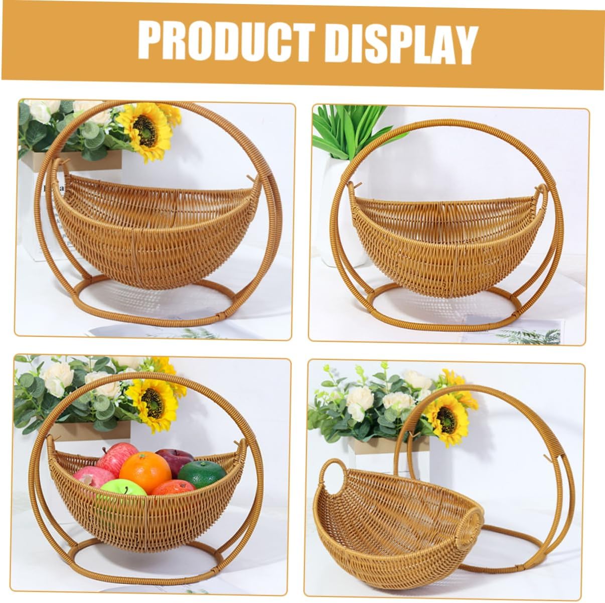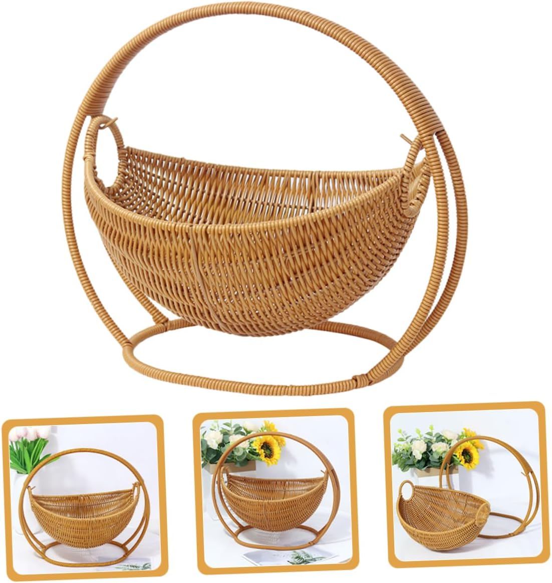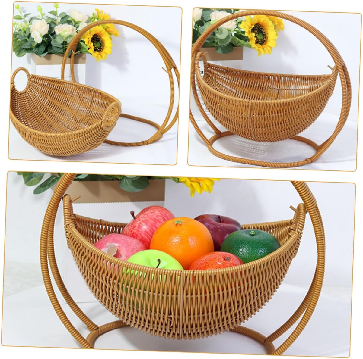 Package Include 1 x fruit basket Features -Material:Plastic decorative bowls -Color:Beige key dish -Lightweight and portable: despite its sturdy construction, this basket is lightweight and easy to move, allowing you to effortlessly change its location as needed basket tray - material: made from rattan faux rattan, this fruit basket is designed to be both and stylish, ensuring longlasting use and a chic look for your kitchen counter boat shaped bowl -Versatile use: Suit for holding fruits, snacks, candies, and other small items, this basket is a versatile addition to any home, making it ideal for both storage and decoration tall wicker basket -Size:29.50X29.50X25.00cm/11.59X11.59X9.82in round wicker tray -Elegant design: the creative cradle design adds a touch of elegance to your living room or kitchen, making it a Suit centerpiece for any table or countertop picnic baskets -Easy to clean: the smooth surface of the faux rattan material makes this basket easy to clean and maintain, ensuring it always looks its with minimal effort extra large fruit bowlGoods Informationfruit bowl Simply place it on your countertop and enjoy a space.fruit bowls The woven design adds a touch of rustic charm to your kitchen decor, making it both functional and stylish.decorative fruit bowl Use it as a fruit bowl to keep your apples, oranges, and bananas within.bowl for fruit This versatile wicker basket is Suit for organizing your kitchen counter