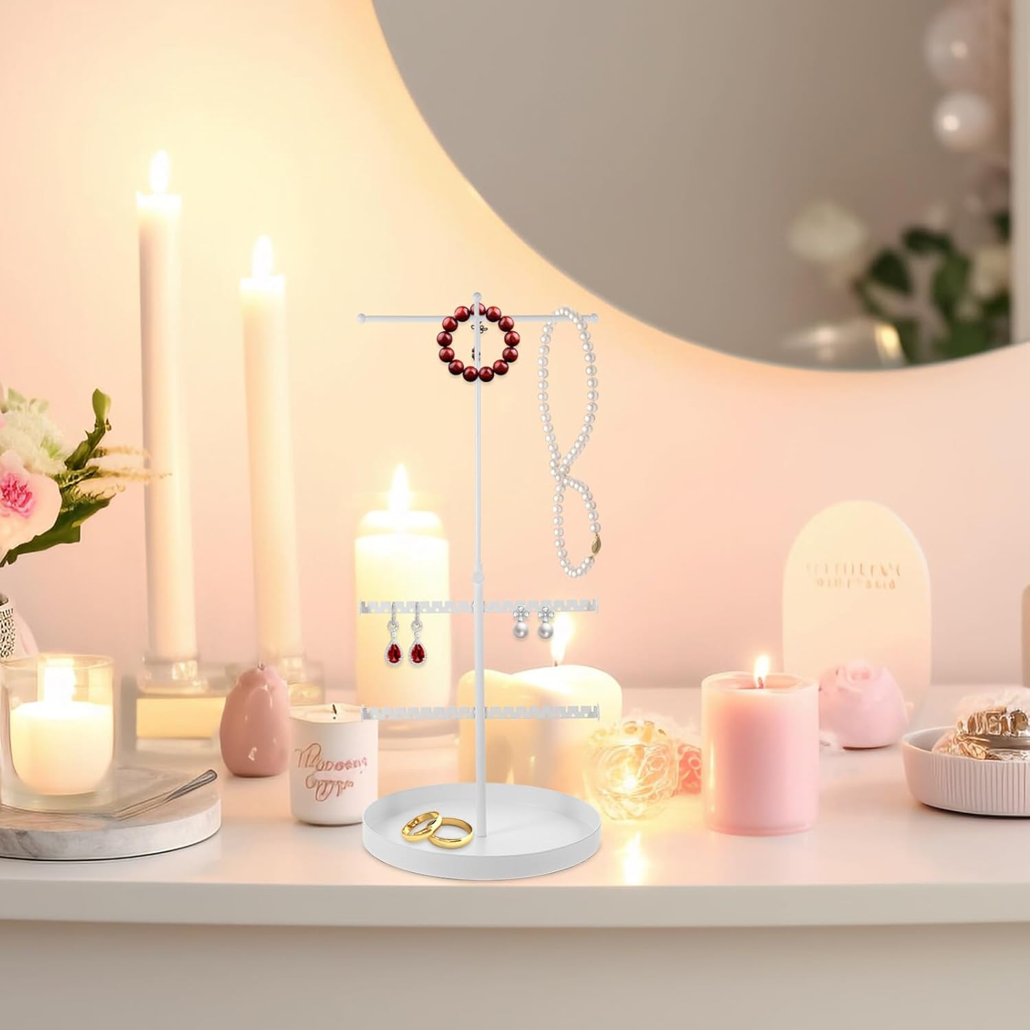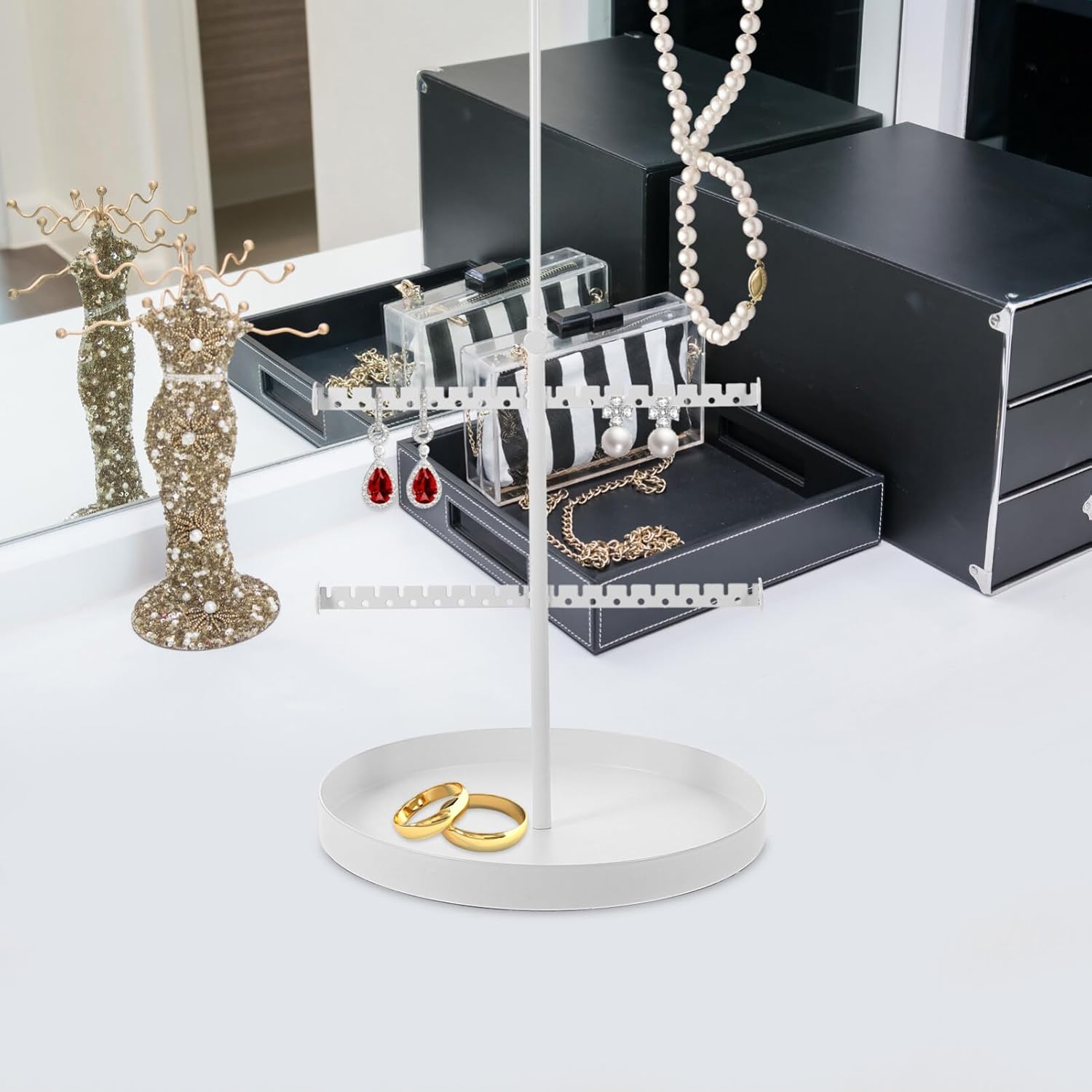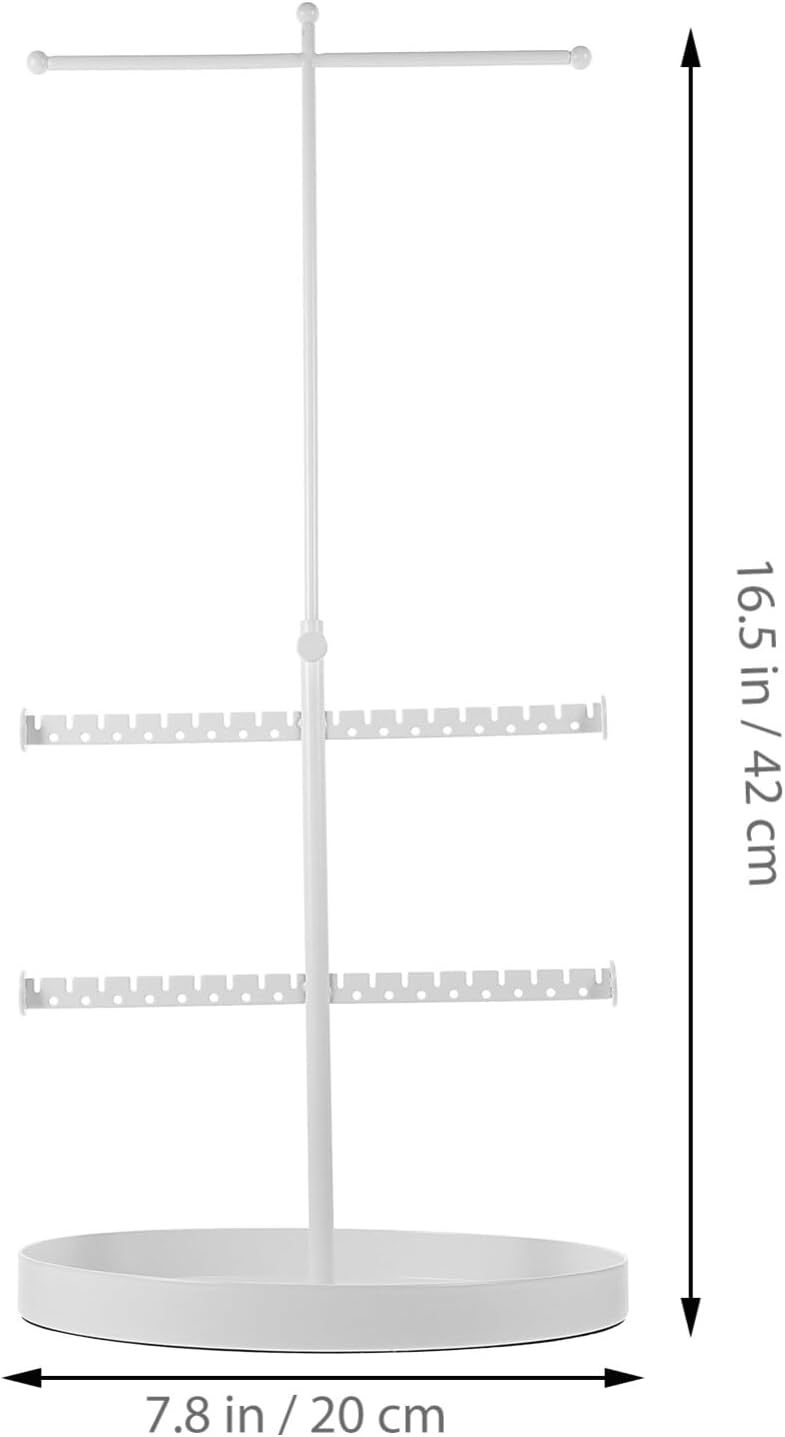 DescriptionJewelry Tree Stand Organizer 3 Tier Metal Jewelry Holder with Ring Tray Base Necklace Bracelet Earrings Display Rack Key Hanger Headband Organizer for Home Entryway Features-Color:White;-Material:Iron;-Size:42.00X20.00X20.00cm;16.51X7.86X7.86inPackage Including1 x Jewelry Rack;