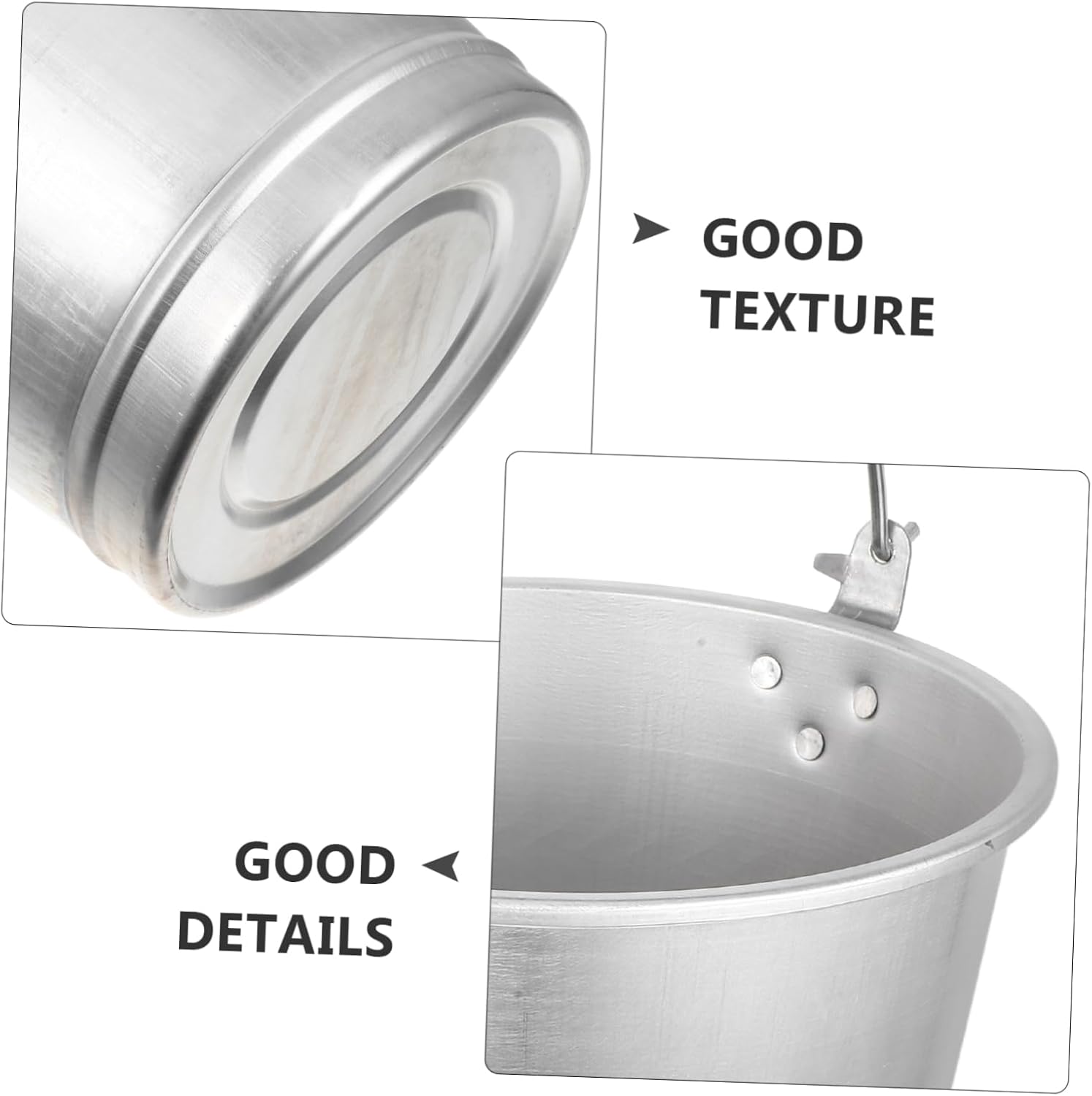 Package Include 1 x bucket Features - Versatile: Great for storing solids, liquids, sands, cleaning products, paint, also as flower pot or trash can and more water barrel -Size:27.50X27.50X25.00cm/10.81X10.81X9.82in sturdy water storage bucket -Color:Silver portable metal water bucket - Simple appearance: The simple appearance design is fashionable and conforms to the public's aesthetics, practical to use vintage bucket - Applicable places: This Bucket is hotels, home, kitchen, and other occasions to use water bucket container - Useful: The bucket comes with strong carrying capacity, Metal Bucket is very comfortable to hold water storage bucket - Multipurpose: Use the large bucket to hold water, milk, ice. Multipurpose and convenient to use milk barrel -Material:Aluminum water containerGoods Informationsturdy water storage bucket Wide range of use, can be used as water buckets, milk buckets, water buckets,etc.bucket with handle This is a Bucket made of Aluminum materials that is strong enough to last a long time.storage bucket Suitable for use in home, farm, kitchen, restaurant and other places