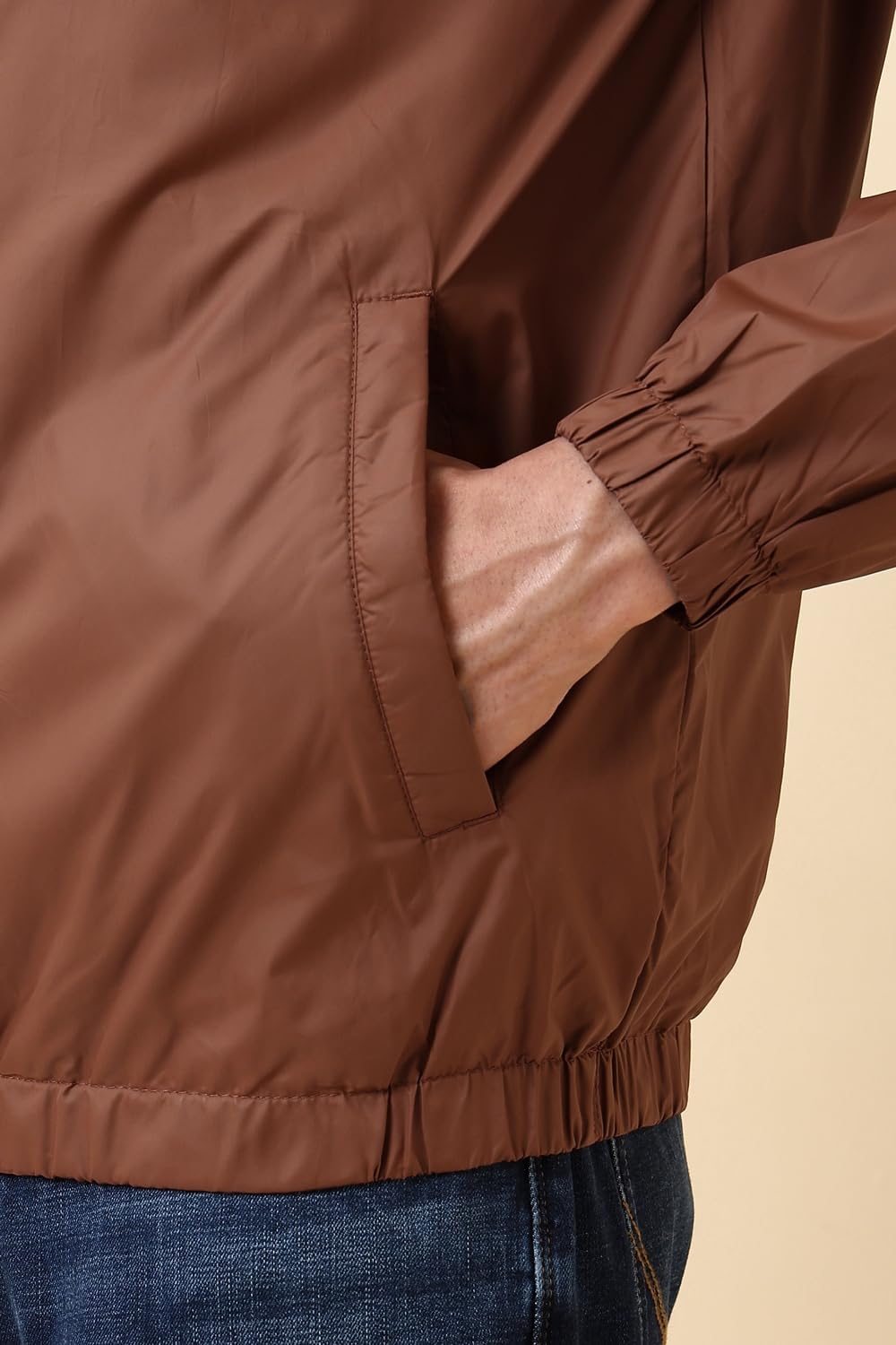 Allen Solly Men's Solid Windbreaker Jacket without Hood | A-line Style | Welt Pocket