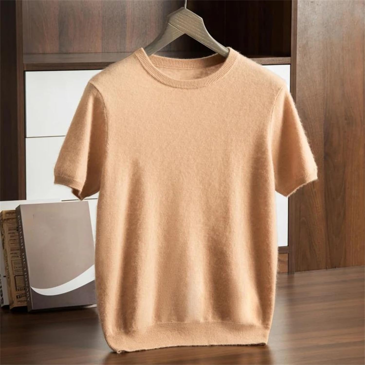 Material:WoolCraft Of Weaving:KnitApplicable Season:Spring And AutumnApplicable Scene:BUSINESSPattern Type:SolidCollar:O-NeckStyle:CasualSleeve Length(Cm):Short(4-16Inch)Gender:MENTops Type:TEESItem Type:Tops
