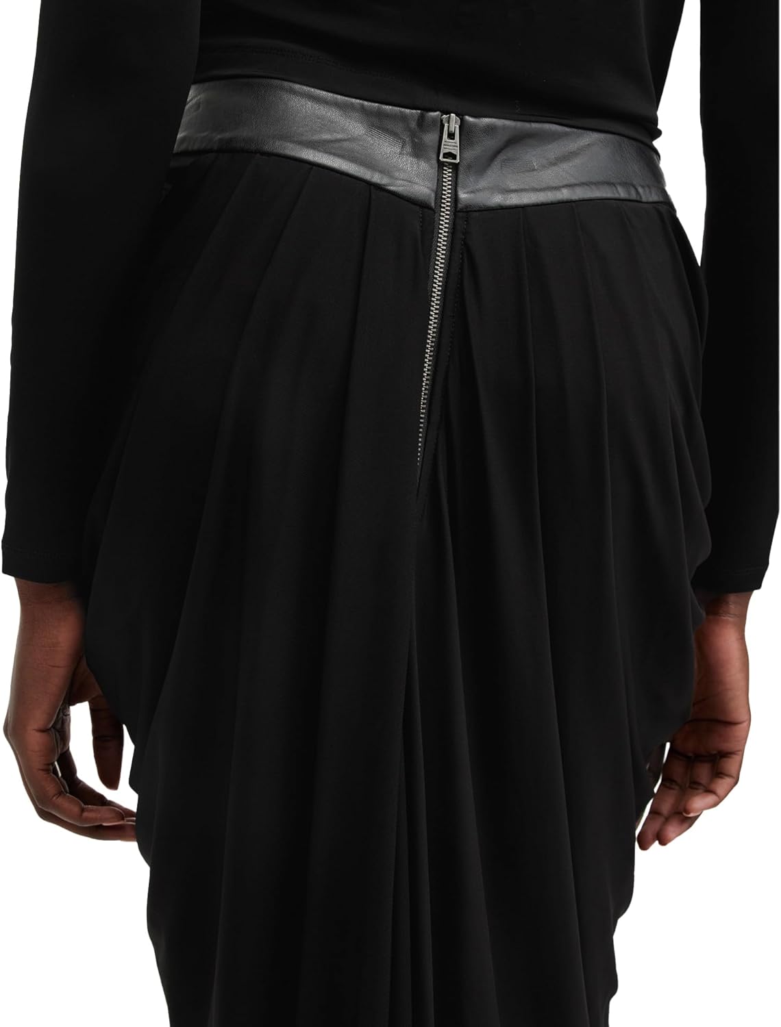 THE MADI SKIRT IS A NEW SKIRT SHAPEFOR THE SEASON. IT HAS A FAUX LEATHER WAISTBAND AND A EXPOSED CB ZIP CLOSURE SYSTEM. THE SKIRT HAS PLEATS AT THE WAISTBAND WHICH CREATE AN HOURGLASS SHAPE ON THE HIP. SKIRT IS MAXI AND UNLINED