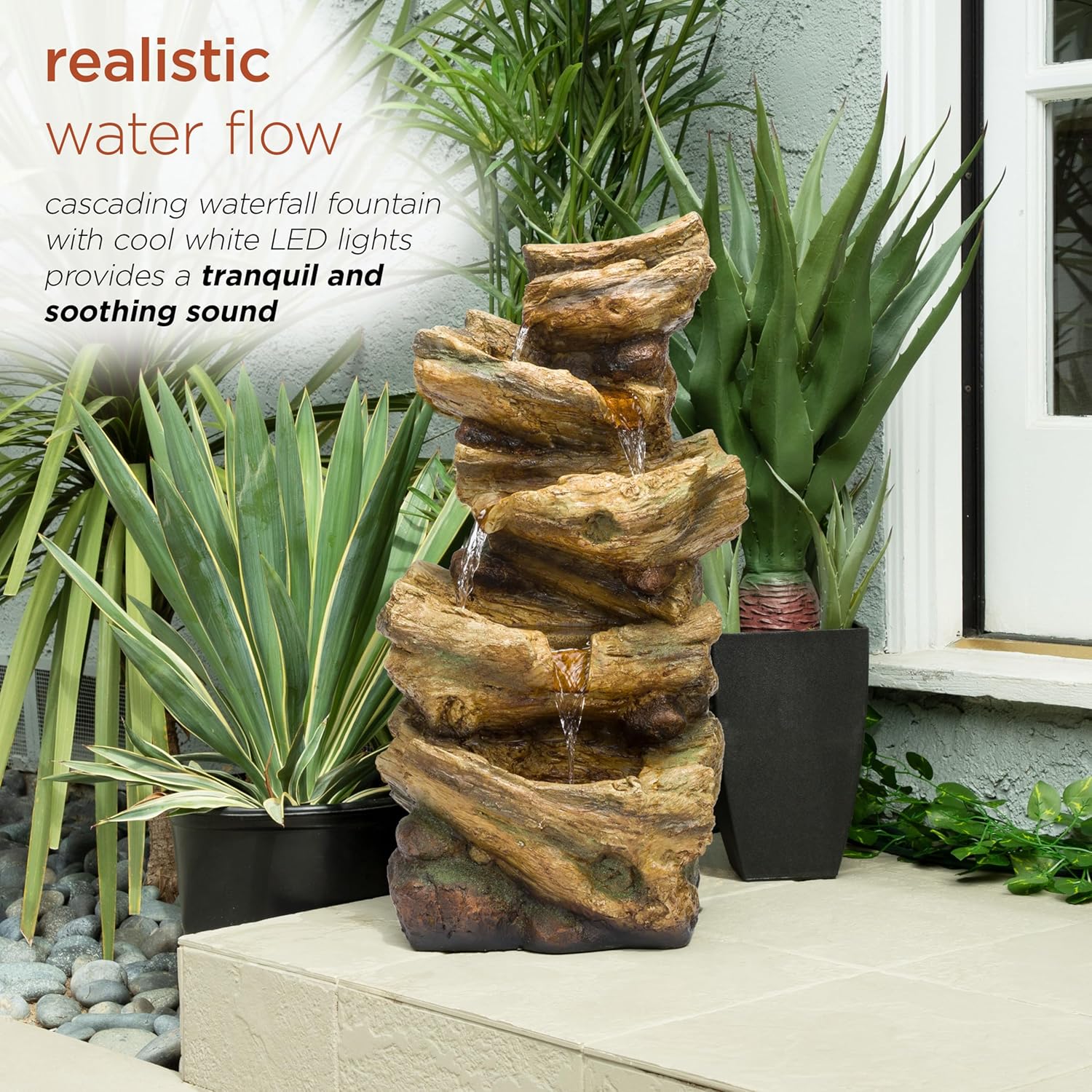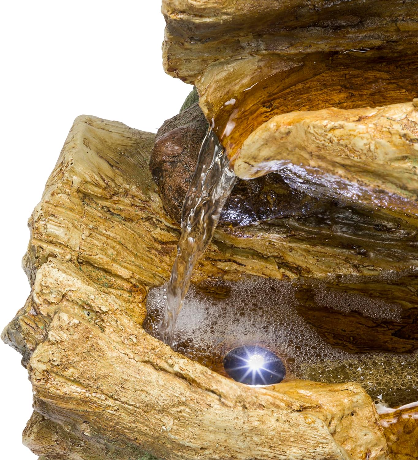 Add a touch of rustic charm to your outdoor space with the Alpine Corporation TZL226 24" Outdoor 4-Tier Log Fountain with LED Lights. This stunning water feature features a realistic tree trunk design, making it an eye-catching focal point in your garden, patio, or backyard. The 4-tier log fountain creates a natural, cascading water flow that adds a soothing sound to your outdoor setting, perfect for relaxation. The built-in LED lights illuminate the fountain, creating a beautiful, glowing effect in the evening, highlighting the flowing water and enhancing your outdoor décor. The log water feature glows beautifully, making it an inviting centerpiece after dark. Crafted from durable materials, this outdoor 4-tier fountain is designed to stand up to the elements, ensuring it remains a lasting addition to your outdoor area. Whether placed in your garden or on your patio, this cascading tree trunk fountain blends beautifully with the natural surroundings. Easy to assemble and set up, this LED illuminated water fountain brings both beauty and tranquility to your outdoor living space. Enjoy the calming sound of water and the glowing lights, with two years manufacturer's Support from date of purchase.