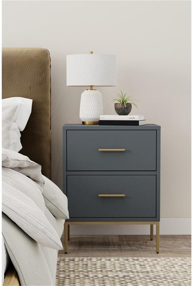 Add modern flair to your bedroom with the Madelyn 2-Drawer Nightstand from the Madelyn collection. This furniture piece, along with others in the collection, is crafted from sustainably sourced mahogany and features English dovetail construction and metal ball-bearing drawer glides. The clean lines and beautiful finish blend effortlessly in any decorating scheme. Coordinates with other pieces in the Madelyn collection which are sold separately.FeaturesOverall product dimensions are 20" W x 15" D x 26" HComes fully assembled with no additional assembly requiredFeatures metal accents that bring a bit of glitz and glamour to the spaceFeatures English dovetail drawer construction for long-term durabilityFeatures ball-bearing metal drawer glides which prevent the furniture piece from tipping overDimensions:Bedside TableAssembled Product: 20 inches wide x 15 inches deep x 26 inches highLength: 15 inchesWelcome to Alpine Furniture, your California-based destination for high-quality, sustainable wooden furniture. Since 1993, we've been creating timeless mid-century, farmhouse, and transitional pieces that bring warmth and style to your home. Our team of skilled artisans take great care in every step of the production process, from selecting the finest materials to applying the finishing touches. Sustainability is at the core of what we do, using only solid lumber and veneers from sustainable forestry operators to minimize our environmental impact. At Alpine Furniture, we believe in enhancing your home's appeal with comfortable and practical furniture. Thank you for choosing us – we look forward to providing you with high-quality furniture for years to come.