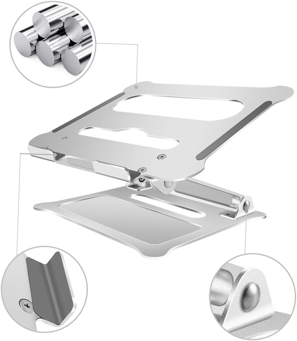 Package List 1 x computer bracket Features - Color: Silver. - Material: Aluminium alloy. - Size: About 26x23x16cm -Product Info:Aluminum alloy notebook stand - The bracket to prevent your notebook from overheating Computer Stand. - Notebook storage bracket simplify your desktop space Notebook Bracket. - for home, office, train, restaurant, coffee shop use Laptop Stand. - Made from material for durable and use - Lightweight for convenient and portable to carry.Goods InformationLaptop Holder This is a premium aluminium alloy laptop stand.Laptop Stand Elevate your laptop and tablet at the best angle for comfortable typing and watching.Computer Bracket Easy to install and light weighted enable you take the stand to office, home or traveling