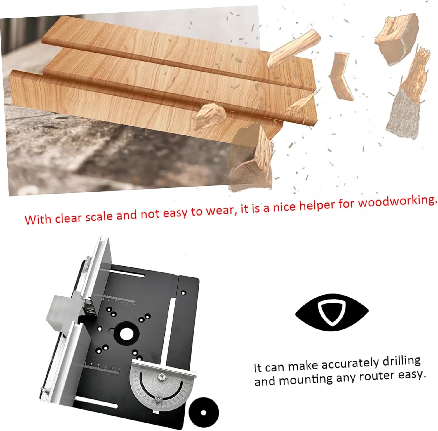 Package Include 1 x Router Table Insert Plate 1 x Back Plate 1 x 180 Angle Gauge 1 x Neutral Paper Box Characteristics -Multifunctional design: the router table insert plate set is versatile, providing ample workspace and support for various woodworking tasks universal router table -Easy installation: the insert plate allows for quick and easy installation without the need for extra tools, saving you effort router plate insert -Metal material: made from aluminum alloy, this router insert plate set is and strong, ensuring long term use without wear woodworking benches router table plate -Size:24.00X20.00X0.40cm/9.43X7.86X0.16in aluminium router table insert plate -Wide application: available in a compact size, this set is suitable for different router table dimensions, offering flexibility for your specific needs woodworking benches router plate -Precision machining: each router table plate is precisely machined to allow flatness and accuracy, delivering better performance in your woodworking projects router fence -Color:Black router table inserts -Material:Aluminum alloy aluminum router lift table engraving for spirit level lifting platformGoods Informationwoodworking benches router plate The aluminum alloy router insert plate set is an essential tool for any woodworking enthusiast.table insert plates This set provides a stable and precise platform for your routing tasks.wood router table insert plate Whether you're working on exquisite designs or cuts, this set allows accuracy and ease of use