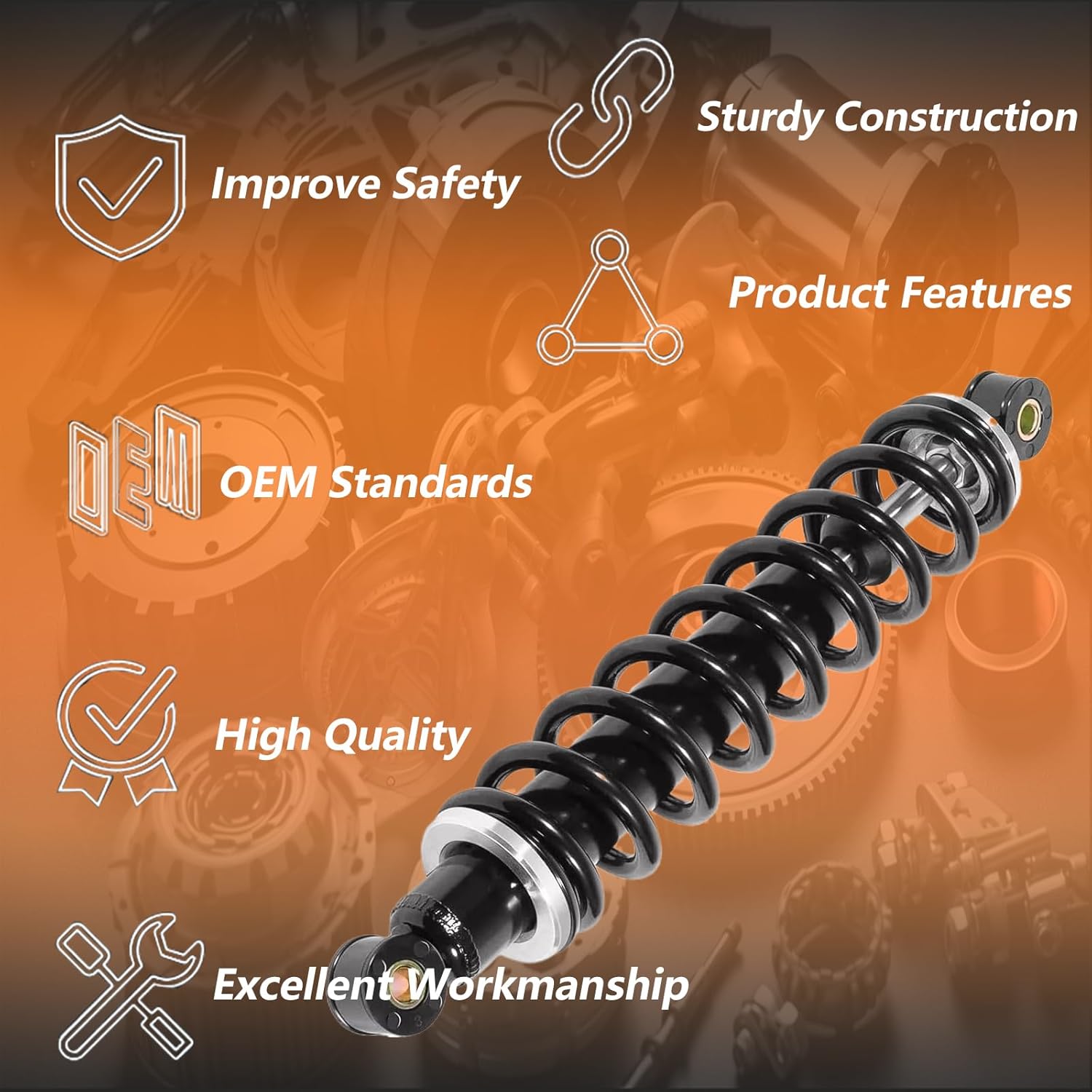 Replacement Part Number:AM130448Compatible with Gator Models:For 4X2, 6X4 Gators, Diesel Gator, Trail Gator, Worksite GatorFor Gator Turf (4X2)For TS 4X2 Gator Utility VehicleFor TX Turf or TX Turf 4X2 Gator Utility VehicleFor TX4X2 Gator Utility VehicleFor Military 6X4 Gator (A1) Utility Vehicle (M-GATOR)For TH 6X4 Gator Utility Vehicle (Diesel)For TH 6X4 Gator Utility Vehicle (Gas)Easy install:Design Direct Complete Strut Assembly Equipped with Strut Coil Spring & Mounts -Ready to Install. Don't need any special tools! Remove and replace the complete Shock Assembly directly, Trouble-Free Install, Saves Time and MoneyPackage contains:1X Front Left Shock1X Front Right Shock