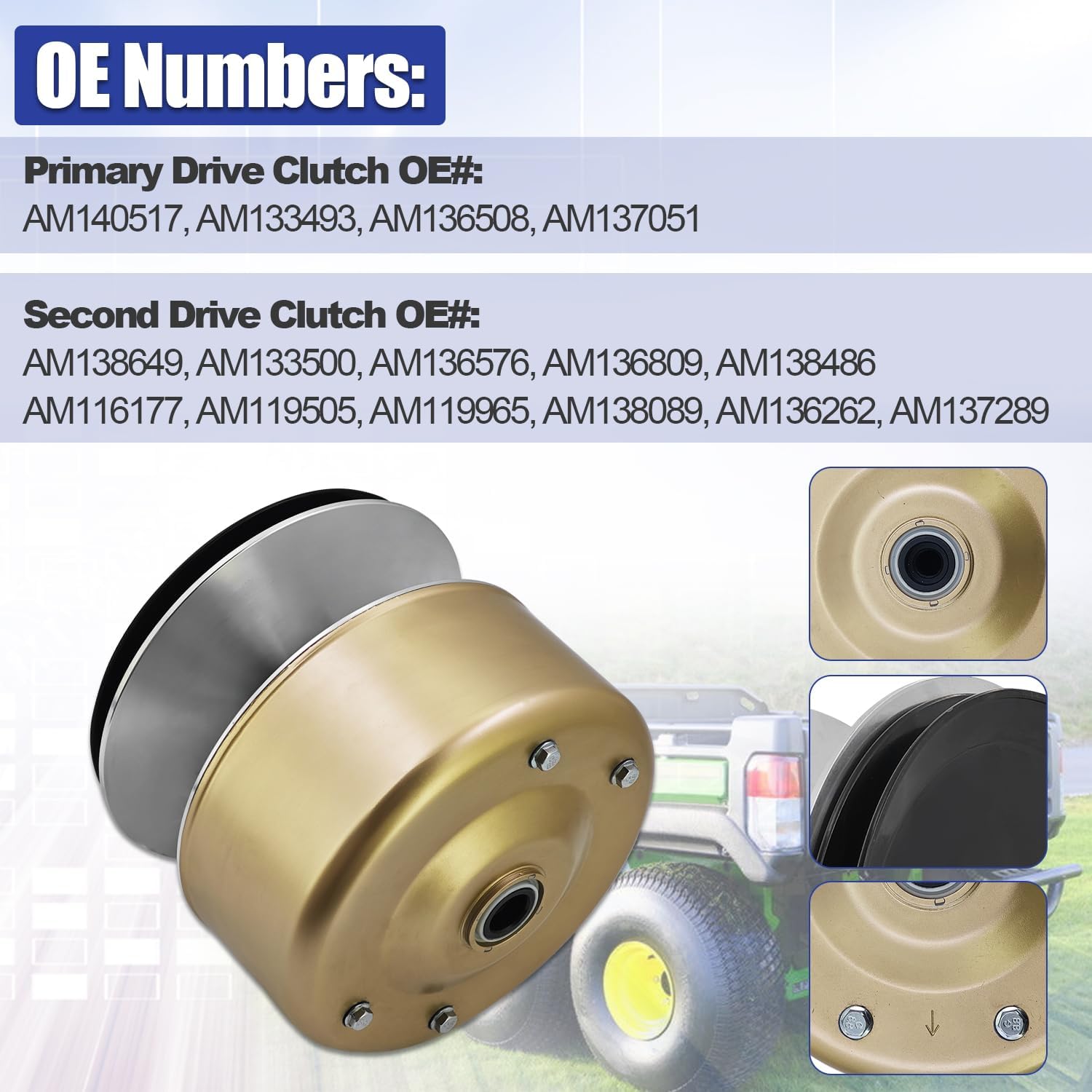 | OEM Part Number | AM140517 AM138649 Primary&Second Drive Clutch Assembly Compatible with John Deere TH 6X4 TX 4X2 Gator Utility Vehicle- Replace AM133493,AM133500 |