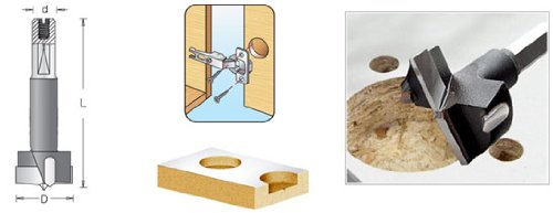 Application: boring machines (10mm Shank) and drill presses (3/8" Shank), #203258, (D) diameter: 25mm, (D) shank: 10mm, Overall Length (L): 77mm, rotation: left hand, 203258 carbide Tipped hinge boring bit L/H 25mm DIA x 77mm long x 10mm Shank