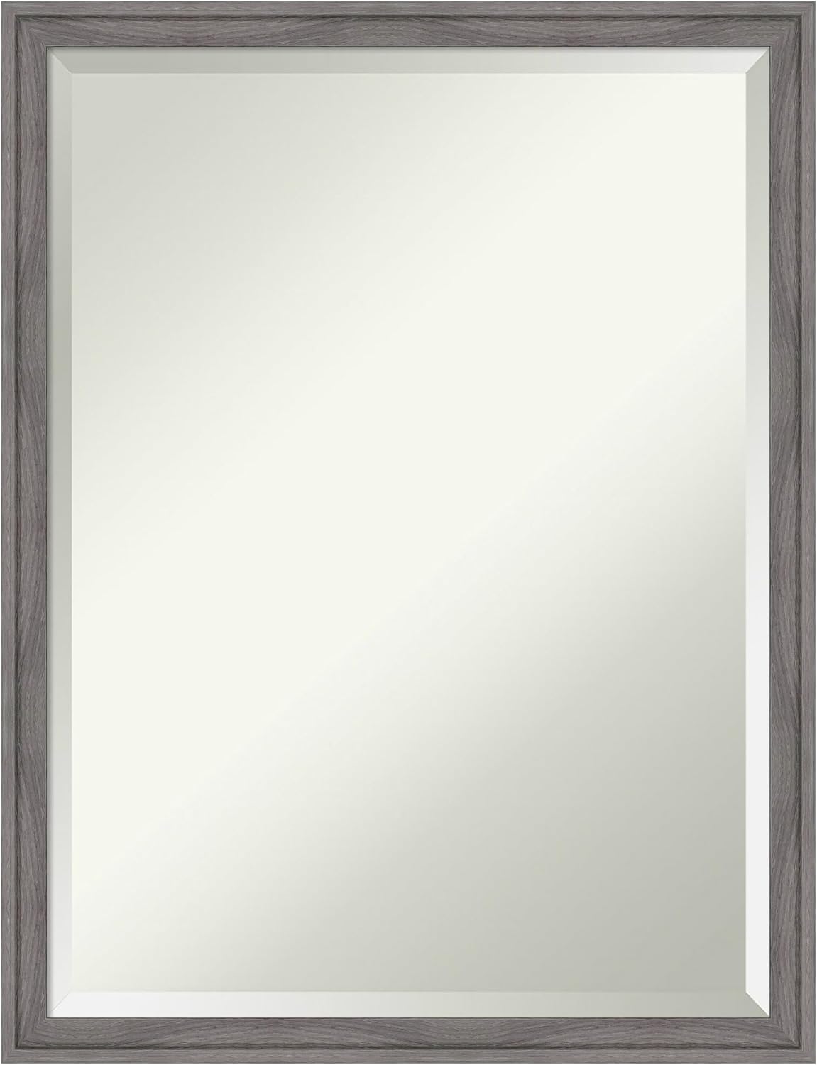 PRODUCT: Amanti Art Beveled Bathroom Wall Mirror; OUTER SIZE: 37.75 x 25.75 inches; FRAME: Florence Grey; FRAME FINISH: Matte; FRAME COLOR: Grey. The Florence Grey frame is an elegant yet simple woodgrain grey frame with raised inner and outer ridges and a grooved outer facing edge. Give your bathroom the finishing touch with this framed wall mirror. Individually made using traditional custom framing techniques, it has the quality you would expect from your local frame shop. It holds its value with premium finishing that can be appreciated up close. Because of our attention to detail and focus on artistry, architects, interior designers, and homeowners alike choose this mirror to create beautiful living spaces.