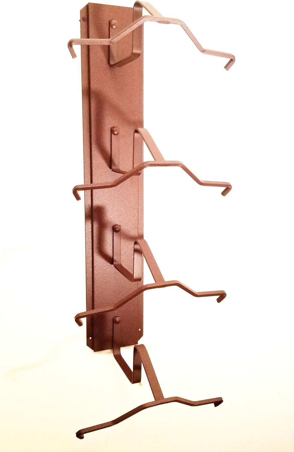 Keep your Hats looking their Best and show them off with this stylish American Made Crown Up hat holder by Mark Christopher Collection. Designed to Keep Your Hats looking their best & at arms reach sitting crown Up. Easily holds four hats. Looks Great on any wall. Powder Coated Wall Mounting Hardware is included Hat Rack is made of powder-coated steel. Approximately Size: 27.25" H x 10"W x 10" Deep Some assembly required (7/16 end wrench or socket is required for simple assembly). Proudly Made in The USA with Powder Coated American Steel Color: Rust(Chisholm Trail Tan)