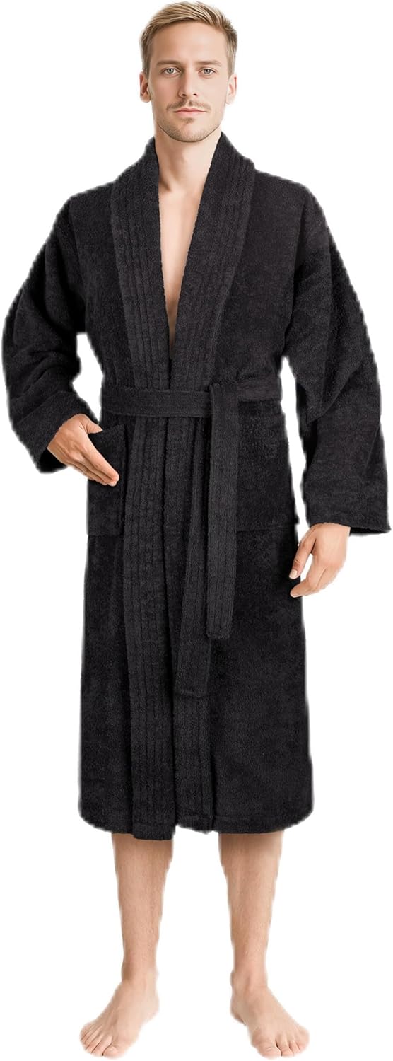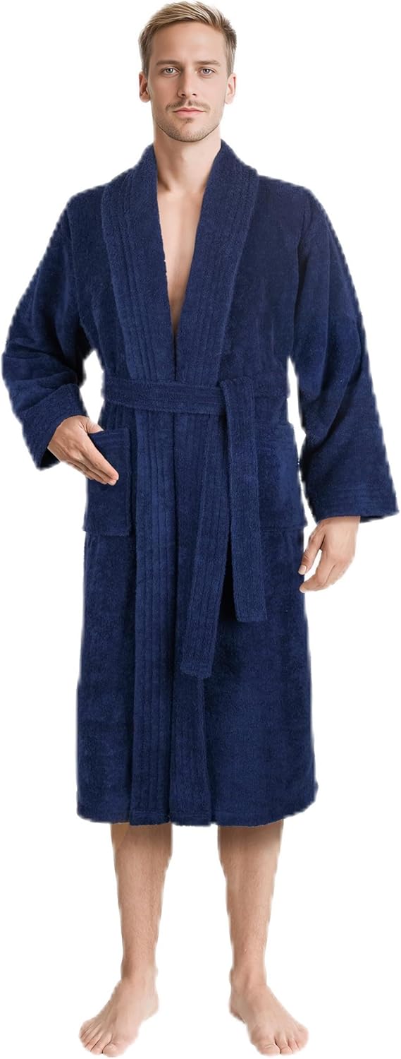 Experience ultimate relaxation with the American Soft Linen Men’s 100% Cotton Terry Bathrobe, designed for men who value comfort, quality, and style. Made from luxurious premium natural cotton, this soft and absorbent robe feels like a five-star hotel spa experience at home. The shawl collar design, adjustable belt, and convenient pockets combine functionality with timeless elegance. Its quick-dry, breathable fabric keeps you warm and comfortable after every shower or during relaxed mornings. Available in six inclusive sizes (S to 3X-Large), this men’s cotton bathrobe offers the perfect fit for every body type. Whether you’re lounging at home, getting ready for the day, or winding down after work, this robe brings unmatched softness and durability. (Small - Medium - Large - XLarge - 2XLarge - 3XLarge) OEKO-TEX Standard 100 certificated and tested for harmful substances. Make every moment of comfort a statement of style with American Soft Linen — where luxury meets everyday relaxation.