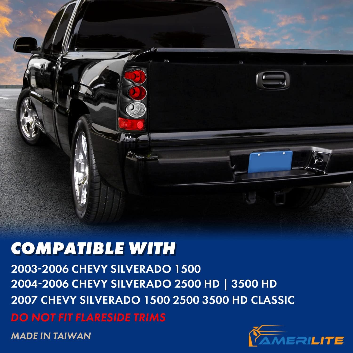 Fits: 2003, 2004, 2005, 2006 Chevy Silverado 1500, 1500HD, 2500, 2500HDFits: 2004, 2005, 2006 Chevy Silverado 3500Fits: 2007 Chevy Silverado 1500/2500/3500 ClassicComplete set includes Left (Driver Side) and Right (Passenger Side)CONDITION: Brand New In Original PackagingHigh Quality Taillights made by OEM approved manufactureres with materials that meet or exceed strict OEM requirements.Do not come with installation instructions and professional installation highly recommended.
