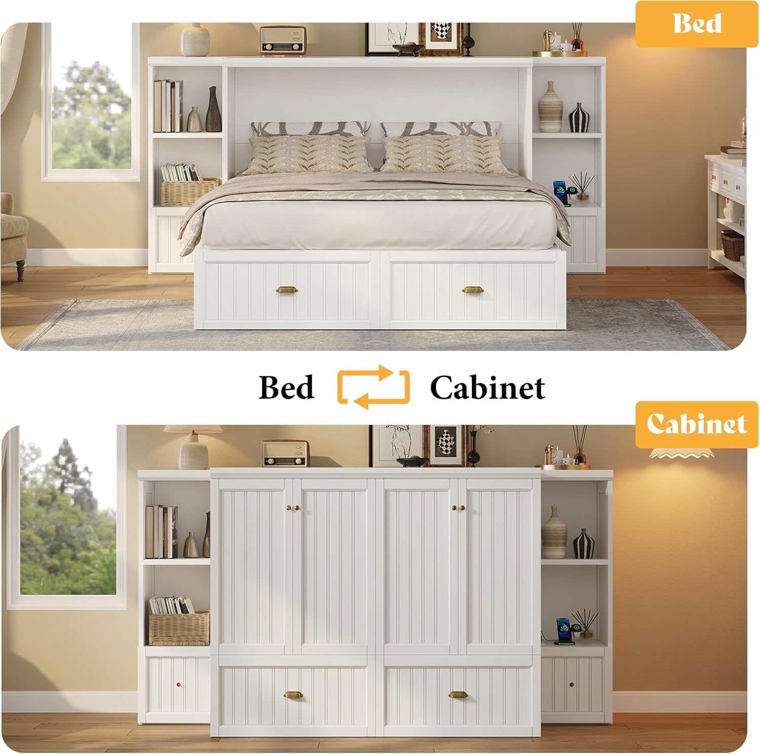 | Additional Features | 3 Storage Shelves, Cabinet Bed, Charging Station, Large Storage Drawer, Wide Headboard |