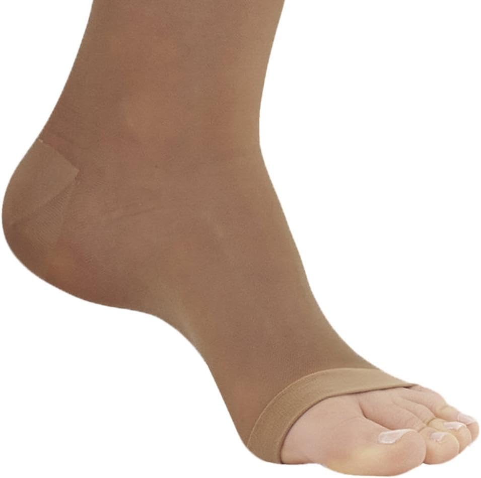 Features:Sheer, Elegant Look: The sheerest pantyhose available in this compression level—perfect for achieving both medical support and a polished appearance.Open Toe Design: Offers more breathability and shoe versatility while still delivering firm support where it counts.Durable Construction with Cotton Crotch: Reinforced heel and toe add long-lasting wear, and the breathable cotton crotch increases comfort for all-day use.Made in the USA: Proudly manufactured with premium materials and exceptional quality control.Compression Level:20-30 mmHg Graduated CompressionFirm compression designed to improve circulation, manage swelling, and ease the discomfort of varicose veins.Fiber Content:80% Nylon / 20% SpandexAmes Walker Style 33OT is our highest compression sheer pantyhose—now available in an open toe design. It’s the ultimate balance of elegance and support, delivering the medical-grade compression you need with a barely-there look. Reinforced heel and toe, breathable cotton crotch, and a sleek sheer finish make this one of the most versatile 20-30 mmHg pantyhose options on the market today—all made in the USA.