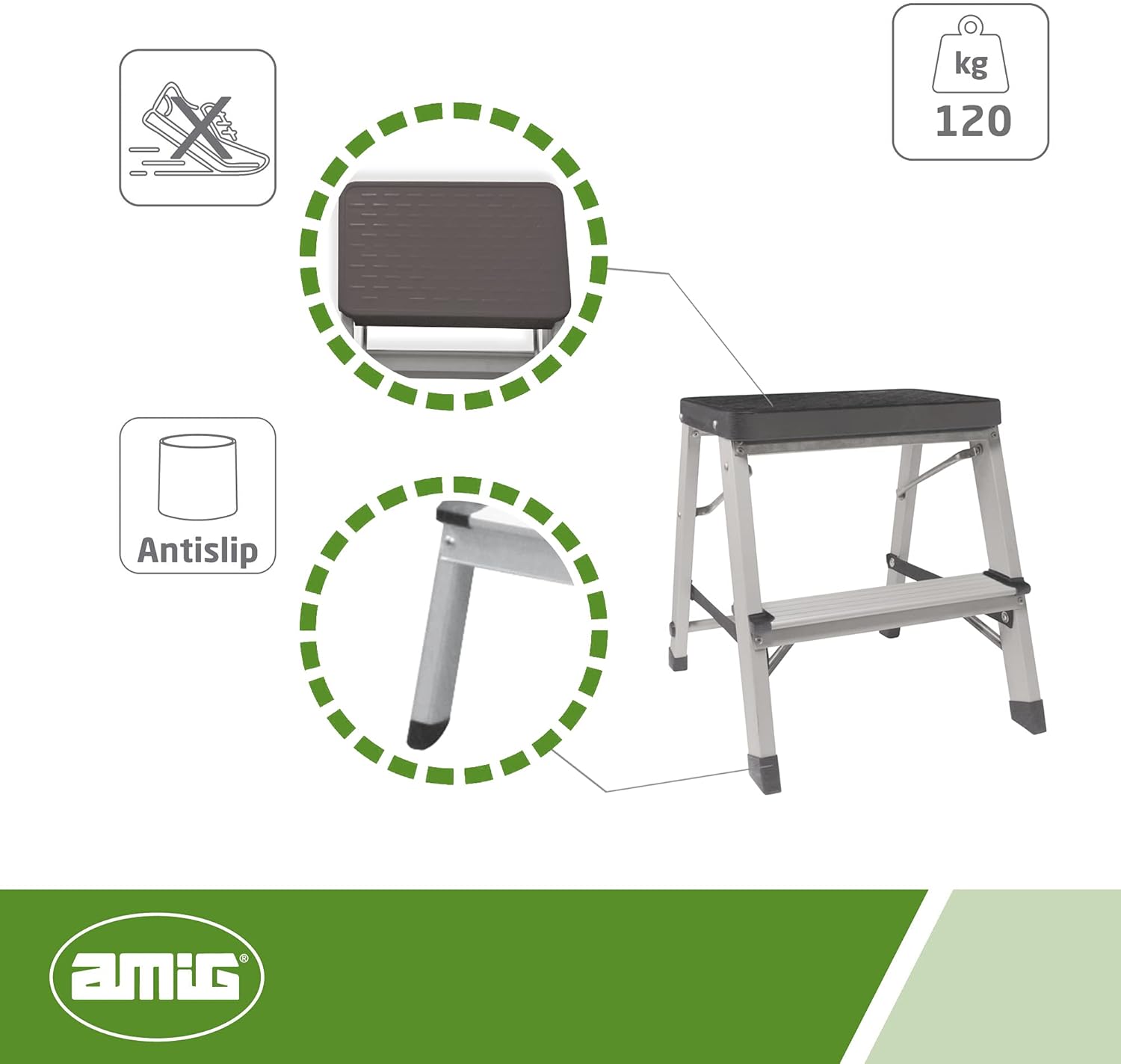Folding aluminum stool with 3 non-slip steps assembled, sturdy compact and width of steps, brings security and feeling of stability once you are on top, does not weigh and is of good quality