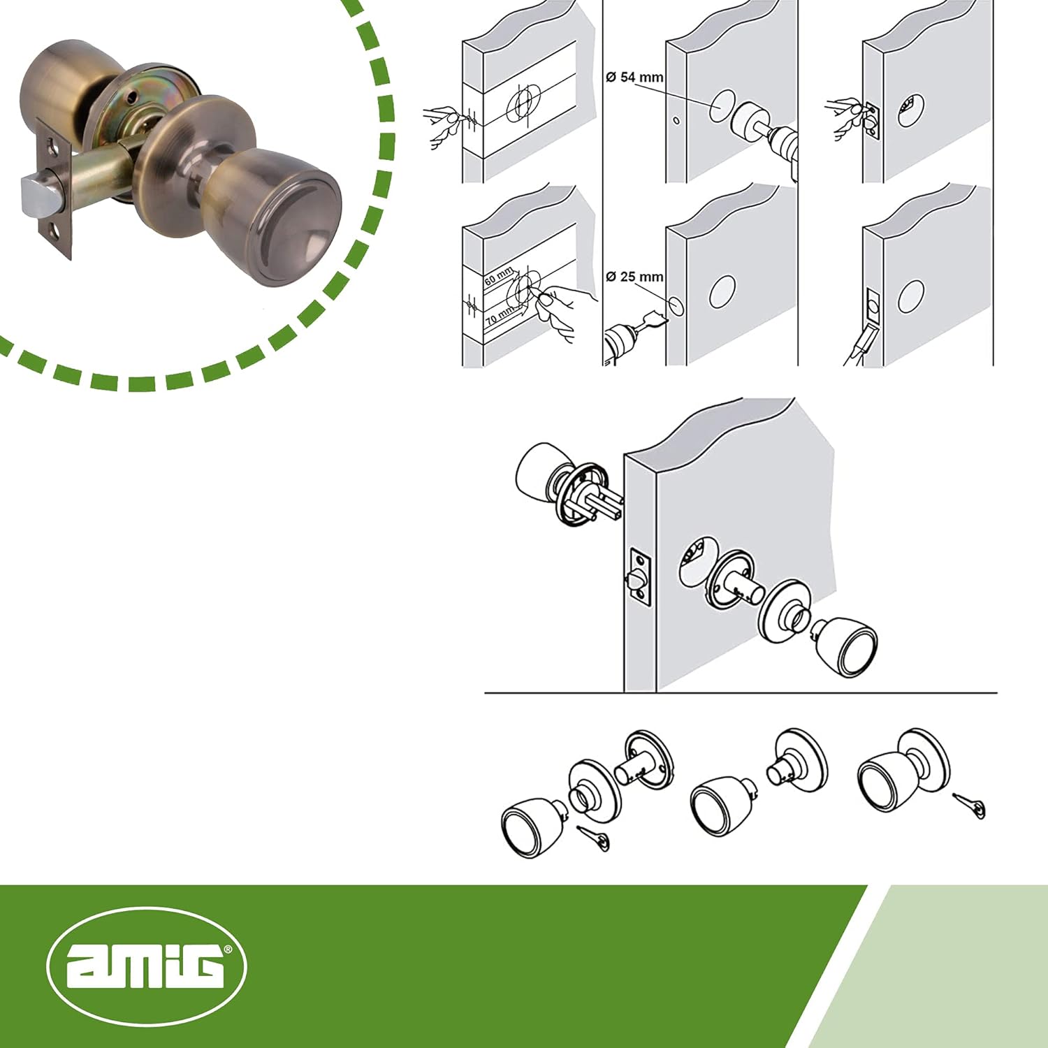 The AMIG Model 601 passage knob is ideal for passage doors in homes and offices or other buildings. Its classic cup-shaped aesthetic and the robustness of its finishes allow to give a new air to the passage areas. [FEATURES] -Made of brass with leather finish. -Cup shape. - Rosette dimensions: 65 mm diameter. -Door handle 60 or 70 mm [WHAT'S INCLUDED] In the package you will receive: -Set of knobs -Handle -Hardware -Placement template. [HOW TO INSTALL] Place the placement template over the door and make the corresponding marks. Position the handle so that the front does not protrude and insert the lag screws. Insert the outside of the knob making sure to fit the square and through screws. Place the rosette until it fits the inner part with light pressure. Insert the knob by tightening firmly to fit the rosette. With the help of the key, press the spring to separate the three pieces. Insert the inner part so that it aligns with the holes of the outer knob and press lightly until it fits the rosette. The release hole can be placed in different positions, depending on the placement. Remember to turn the inner knob so that the spring fits the release hole.