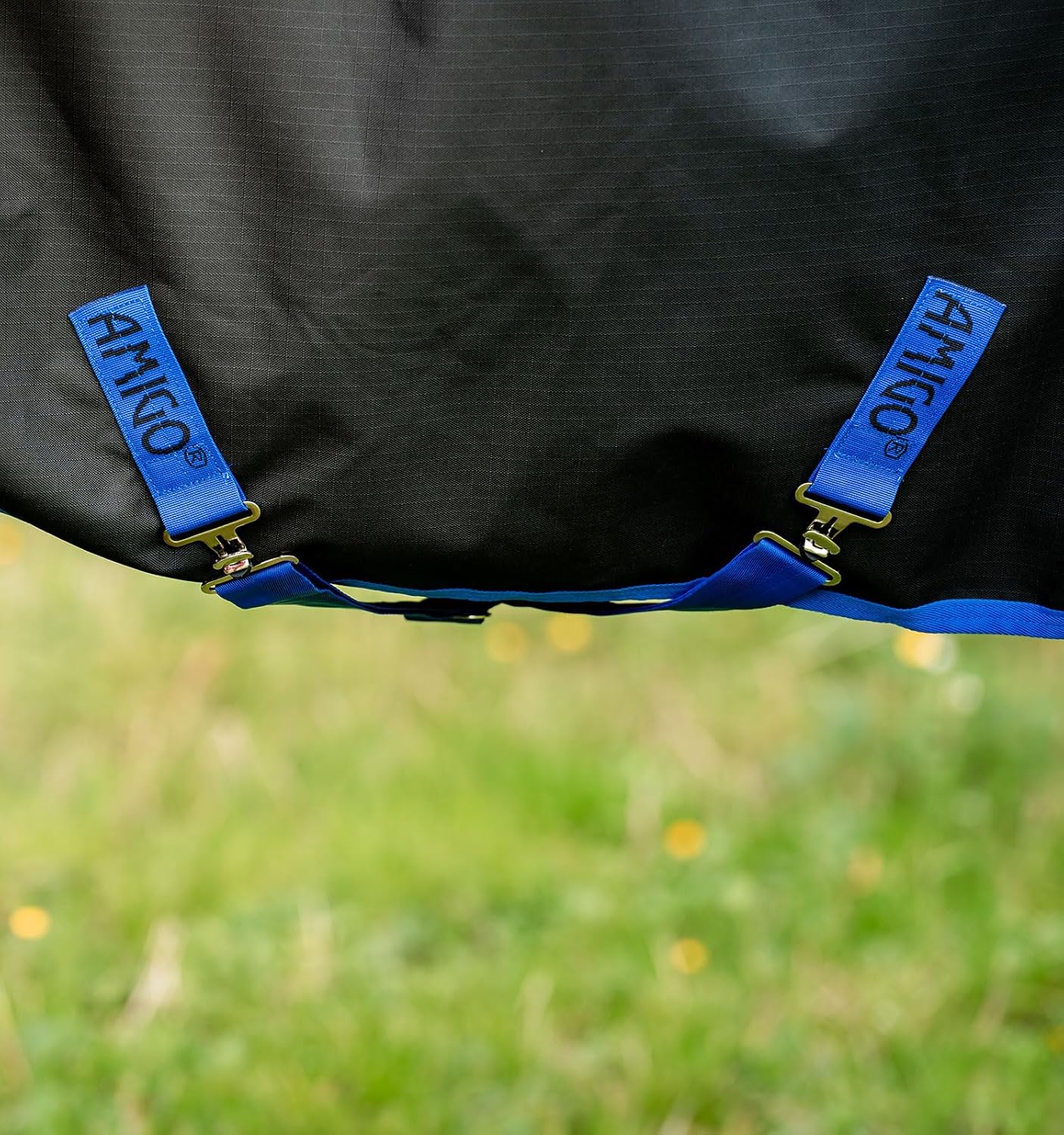The Amigo Ripstop 900D Plus Turnout (100g Light) provides exceptional protection and comfort for your horse. Made with a robust 900D ripstop polyester outer, this turnout keeps your horse dry and warm, featuring waterproof and breathable fabric for optimal comfort in any weather. Designed with a classic front closure and front leg arches, this blanket offers enhanced freedom of movement. Liner loops allow for the addition of a Horseware Liner, easily adding warmth in cold weather. It comes with a detachable hood, allowing adaptability to different weather scenarios. The Amigo Ripstop 900D Plus Turnout (100g Light) includes fiberfill insulation, a shine-enhancing anti-static polyester lining, two cross surcingles, optional leg strap loops, and a tail strap to ensure a secure fit, regardless of your horse's activity level. Add the Amigo Ripstop 900D Plus Turnout (100g Light) to your horse's wardrobe for strong, durable, and breathable protection.