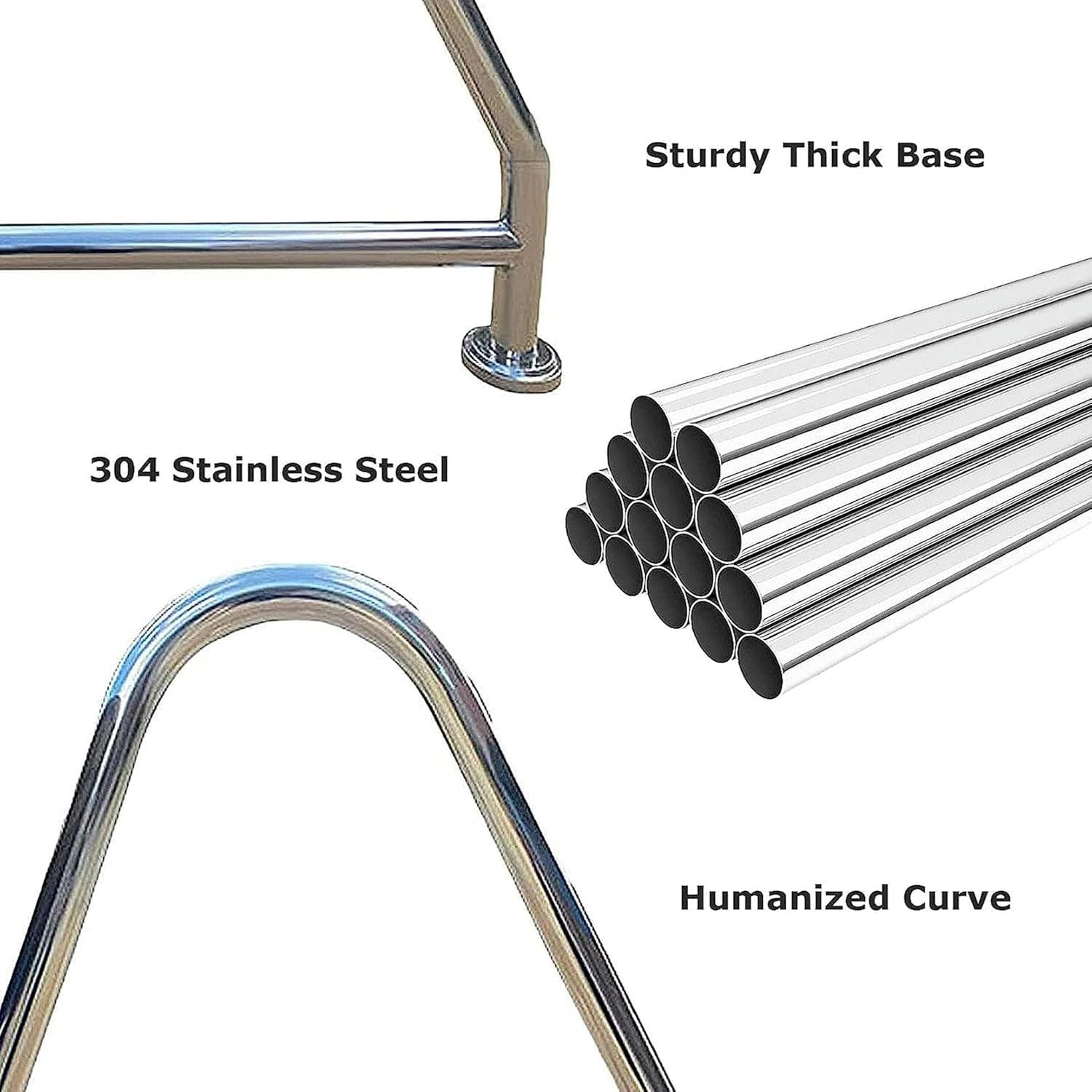 Our swimming pool handrails are made of strong and durable stainless steel material, strong load-bearing, anti-corrosion, strong safety, suitable for indoor and outdoor, enjoy life.Ergonomic Designed The pool rails for inground pool is ergonomic designed with humanized curve for convenient grasp. It will give your family a fabulous experience by decorating your swimming pool.304 Stainless Steel 304 stainless steel is widely used in the production of a variety of products, corrosion resistance, no rust, long service life. Multiple Scenarios Our spa handrail is the best choice for multiple scenarios, which is suitable for swimming pool, sloped entry, spa, water.Polished Surface The smooth polished surface with great high gloss makes it not only a safety facility, but also a decoration.Heavy Duty Parts The handrail with the high quality ensure the base plate connect with the deck frimly.Well Weld The handrail connect with the base with well workmanshipSpecifications: Color: Sliver Material: Stainless Steel SS304Package Include: 1 x Swimming Pool HandrailAfter Sales Question:If you have any questions, you can contact us, we will reply within 24 hours.
