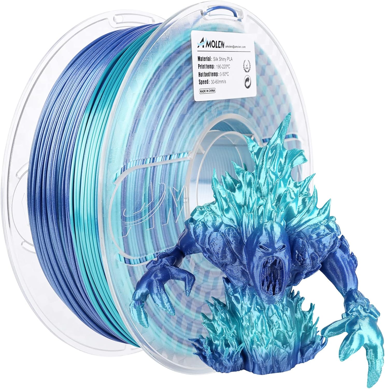 AMOLEN PLA 3D 1.75mm Silk Shiny Printer Filament, Red Gold & Blue Green