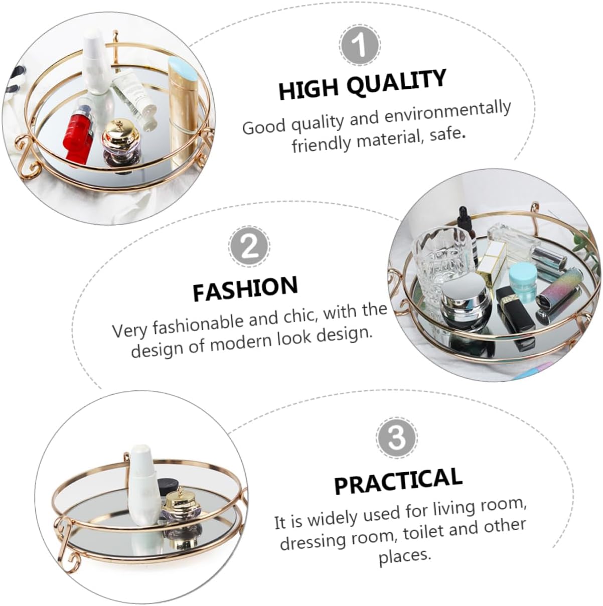 Package Include 1 x Tray Features -Size: 25.50X25.50X7.30cm/10.02X10.02X2.87in Home Mirror Tray -Material: Iron, Glass Storage Mirror Tray - and material, it is and to use Storage Tray. -With fine craftsmanship, it looks beautiful and elegant, a nice decoration for your home Decorative Mirror Tray. -Great for displaying wedding candy, chocolate, some cosmetic, etc Mirror Tray. -Brand-new and great quality, good for you to store small items like some cosmetics and small jewelries Cosmetics Holder. - for wedding ceremony, home, office, hotel and so on, etc Polishing Mirror Tray.Goods DescriptionDecorative Mirror Tray Made of and reliable material, and . Mirror Tray This delicate modern mirror tray can hold many small things such as keys, perfume, cosmetics and so on.Photographing Prop Tray Do you wanna a decorative mirror surface tray? If yes, this item is you a
