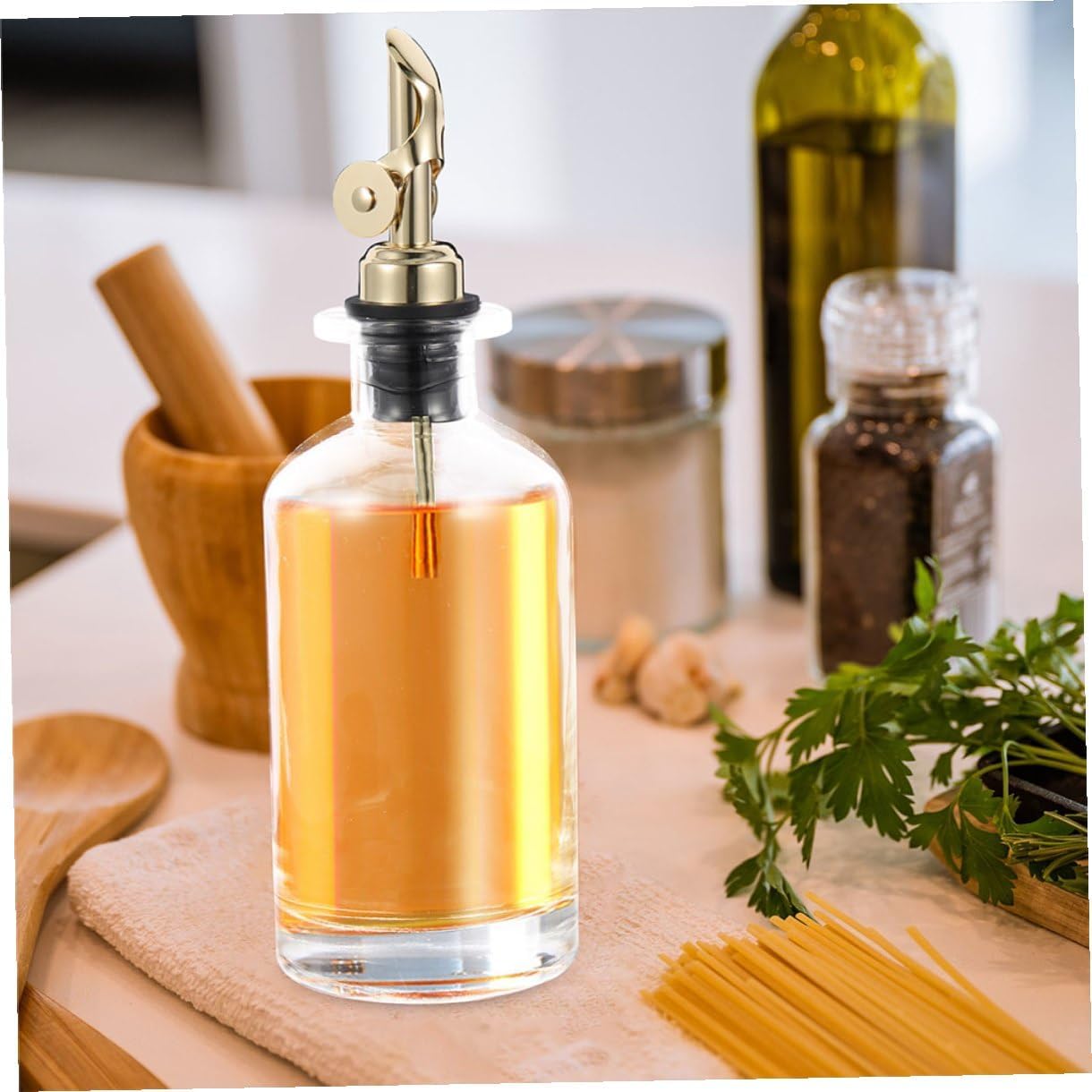 Package Include 2 x Oil Bottles Characteristics - Size: 22.80X8.40X8.40cm/8.96X3.30X3.30in - Color: Golden -Product Info:Automatic oil-opening and closing pot -Material:Glass,Stainless Steel -Capacity: 500ml anti-leak oil dispenser - Transparent bottle design, can clearly observe the amount. A nice helper for your kitchen oil vinegar bottle. - Excellent for olive oil, salad dressings, cooking wines, syrups, soy sauce, vinegar, milk, juice, water and other liquid condiments glass oil vinegar bottle. - Fine workmanship, smooth grinding, the oil bottle is easy to use, sealed and practical oil container kitchen. - This oil bottle is suitable for storing all kinds of liquid seasoning, easy and convenient to make delicious food oil dispenser for kitchen. - The oil bottle is a good helper for cooking in restaurants and kitchens. Smooth sauce bottle, smooth and healthy material, strong and .Goods Descriptionoil dispensing bottle Designed with lid, making your cooking process more convenient.cooking oil glass bottle Are you looking for a creative and convenient soy sauce bottle for your daily cooking use? Our production can meet all your requirements with and reliable materials for use.vinegar dispensers It can hold the olive oil, soy sauce, vinegar, oil and other sauce in the kitchen