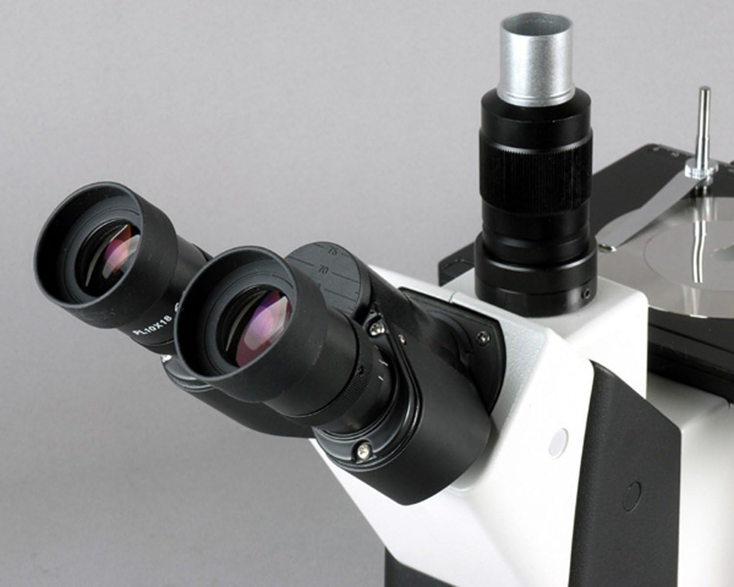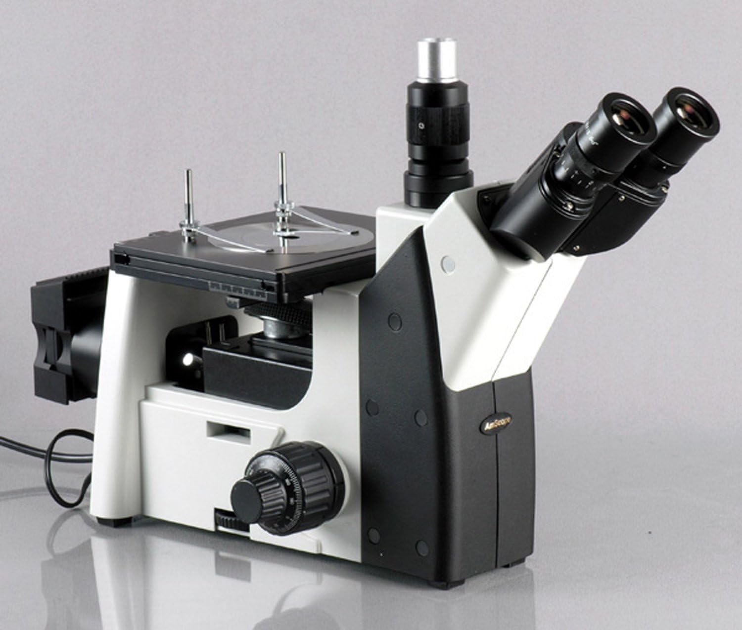 The AmScope ME1200TA inverted metallurgical trinocular microscope has interchangeable pairs of 10x18mm and 16x11mm plan widefield eyepieces, a quadruple nosepiece with four DIN plan achromatic objectives, episcopic Brightfield and polarizing LED illumination, a polarizing condenser, and a double-layer mechanical stage with a stage stop to protect slides and objectives from damage. The trinocular viewing head has a vertical camera mount, a Siedentopf binocular head to adjust interpupillary distance, and a fixed 45-degree vertical inclination to reduce eye and neck strain. The vertical trinocular port has a 100% light-splitting rate and can be used as a 23mm photo port (camera sold separately). The Siedentopf head has a range of 55 to 75mm to accommodate individual eye differences, and bilateral dioptric adjustment to accommodate individual eye-strength differences. A Siedentopf binocular head enables the viewer to change the interpupillary distance without changing the tube length, eliminating the need to re-focus the image. The microscope has a forward-facing quadruple nosepiece and includes 5x, 10x, 20x, and 50x DIN plan achromatic objectives that combine with the eyepieces to provide color correction of magnified images. Plan objectives provide improved focus over the entire range of the viewing field. A metallurgical microscope uses transmitted and reflected light to view opaque or metallic specimens, or larger specimens that cannot be viewed on a standard microscope stage. The microscope has reflected and transmitted episcopic Brightfield and polarizing illumination. Polarizing illumination reflects light off the specimen for enhanced visibility of opaque specimens. Brightfield (BF) illumination allows the specimen to absorb light, resulting in a dark image on a light background. The episcopic illumination system has independent filter holders for yellow, blue, and green filters (included). The iris diaphragm provides optimum contrast and resolution. The 3W LED light source provides bright, cool light for working with temperature-sensitive or live specimens, and a rheostat controls the amount of light emanating from the lamp. The double-layer mechanical stage has a 0.001mm vernier graduation and a removable stage plate to provide transmitted illumination. A vertical stage stop prevents the stage from coming into contact with the slide and objectives. The stage is 7-3/32 x 6-1/8 inches (180 x 155mm) and has a traveling range of 3 x 1-9/16 inches (75 x 40mm). The microscope has a focusing range of 1-5/16" (33mm) and a mechanical tube length of 6-5/16" (160mm). Coaxial coarse and fine focus has tension control to prevent the stage from drifting out of focus. The enamel-coated cast-steel body is durable and resistant to stains and corrosion. SpecificationsHeadTrinocularMagnification50x-800xTrinocular port23mmEyepieces (23mm)PL10x18mm, PL16x11mmObjectives (20mm)5x, 10x, 20x, 50x DIN plan achromaticStageDouble-layer mechanicalFocusBilateral coarse and fineLight source3W LED with rheostatIllumination typeEpiscopicFiltersYellow, blue, greenCondenserPolarizingPower90 to 240V, CE certifiedMicroscopes are instruments used to enhance the resolution of an object or image. Types include compound, stereo, or digital. Compound microscopes use a compound optical system with an objective lens and an eyepiece. Stereo microscopes show object depth in a three-dimensional image. Digital microscopes are used to display an image on a monitor, rather than looking through a lens. Microscopes can have monocular (one), binocular (two), or trinocular (three) eyepieces, with varying magnification abilities. Magnification ability refers to the size of an image. Resolution, also known as resolvant power, refers to the clarity of the image. The interaction between field of view (FOV), numerical aperture (NA), and working distance (WD) determines resolution. Microscopes can control magnification through a fixed focus, or through a range of adjustments. They can also utilize LED, fluorescent, and mirror light sources to help control viewing capabilities. Microscopes are widely used in education, lab research, biology, metallurgy, engineering, chemistry, manufacturing, and in the medical, forensic science, and veterinary industries.United Scope manufactures microscopy equipment and accessories under the brand name AmScope. The company, founded in 1996, is headquartered in Irvine, CA.What's in the Box?AmScope ME1200TA microscope with mechanical stagePL10x plan eyepieces, 23mm, one pairPL16x plan eyepieces, 23mm, one pair5x DIN plan achromatic objective, 20mm10x DIN plan achromatic objective, 20mm20x DIN plan achromatic objective, 20mm50x DIN plan achromatic objective, 20mmEpi-illumination systemPolarizer systemDiffusion filter(3) Color filters: yellow, blue, and greenPower cordDust coverInstructions