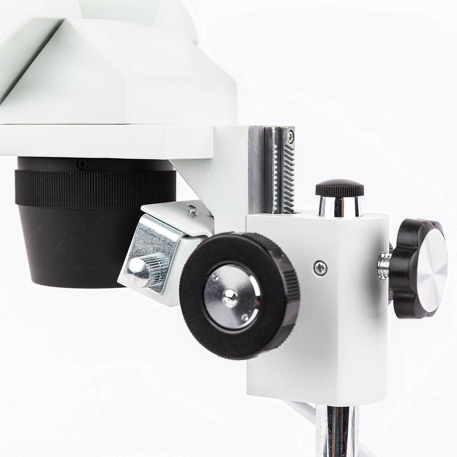 The AmScope SE306R-AZ-E1 digital stereo microscope has interchangeable pairs of 10x18mm and 20x10mm widefield eyepieces, 2x and 4x objectives, upper and lower halogen lighting, two stage plates, and an arm stand. The 1.3MP camera has a CMOS color sensor, image capture and editing software, and USB 2.0 output to capture or display still or video images on a computer or projector. The forward-mounted binocular viewing head has an interpupillary range of 55 to 75mm and a 45-degree inclination to ease viewing for young users. The WF10x18mm and WF20x10mm eyepieces combine with the 2x and 4x objectives to provide 20x, 40x, and 80x magnification, and a longer working distance for inspecting large-scale specimens that require handling or repair. The optical glass lenses provide sharp images, and are fully coated to ensure high-resolution images. Dioptric adjustment accommodates individual eye-strength differences, and eye guards ensure comfortable viewing. A digital stereo microscope, sometimes called an inspection or dissection microscope, has low magnification and a long working distance that enables users to manipulate the object being inspected, and is used where image capture, detailed records, or documentation is required. The 1.3MP digital camera has a CMOS color sensor for displaying still microscopy images and streaming live videos to a computer or projector, and 40x magnification. The camera can be mounted in any 23mm eye tube. The camera includes image capture and editing software that provides still image and live video capture and editing capability, including measurement functions. The software supports JPG, TIF, GIF, PSD, WMF, and BMP file formats and is compatible with Windows XP, Vista, 7, and 8; Mac OS X; and Linux. Camera drivers are compatible with Windows XP/Vista/7/8/10. The software includes Windows APIs for native C/C++, C#, DirectShow, Twain, and LabVIEW that enable custom application development. The camera has a USB 2.0 data port (cable included). The microscope has upper (episcopic) illumination that reflects light off the specimen for enhanced visibility of opaque specimens, and lower (diascopic) illumination that transmits light up through the specimen for enhanced visibility of translucent and transparent objects. The 10W halogen light source provides bright light in a concentrated path. Bilateral coarse focus eases use for left- and right-handed users. The stage has a frosted stage plate for use with lower (transmitted) lighting, and a reversible black and white stage plate that provides contrast with light- and dark-colored specimens when used with upper (reflected) lighting. Stage clips that secure the specimen during viewing. The microscope has a 2-1/8" (53mm) working distance. All metal construction is durable and stain-resistant. Microscope SpecificationsHeadForward-mounted binocularMagnification20x, 40x, 80xObjective power2x, 4xEyepieces (DIN, 30.5mm)WF10x18mm, WF20x10mmWorking distance2-1/8" (53mm)FocusBilateral coarseMicroscope standArm standStage plate (95mm)Frosted and reversible black/whiteIllumination typeUpper (reflected) and lower (transmitted)Light sourceHalogen, 10WPower120V, UL listedCamera SpecificationsResolution1.3MP (1280 x 1024 effective pixels)Image typeStill image and video display and captureCamera typeBrightfieldCamera sensorCMOS (color)Magnification40xReduction lensNoneMounting size23mmComputer connectionUSB 2.0File formatsJPG, TIF, GIF, PSD, WMF, BMPSoftware packageImage capture and editing for Windows XP, Vista, 7, and 8; Mac OS X; and LinuxCamera driver compatibilityWindows XP, Vista, 7, and 8; Mac OS X; and LinuxMicroscopes are instruments used to enhance the resolution of an object or image. Types include compound, stereo, or digital. Compound microscopes use a compound optical system with an objective lens and an eyepiece. Stereo microscopes show object depth in a three-dimensional image. Digital microscopes are used to display an image on a monitor, rather than looking through a lens. Microscopes can have monocular (one), binocular (two), or trinocular (three) eyepieces, with varying magnification abilities. Magnification ability refers to the size of an image. Resolution, also known as resolvant power, refers to the clarity of the image. The interaction between field of view (FOV), numerical aperture (NA), and working distance (WD) determines resolution. Microscopes can control magnification through a fixed focus, or through a range of adjustments. They can also utilize LED, fluorescent, and mirror light sources to help control viewing capabilities. Microscopes are widely used in education, lab research, biology, metallurgy, engineering, chemistry, manufacturing, and in the medical, forensic science, and veterinary industries.United Scope manufactures microscopy equipment and accessories under the brand name AmScope. The company, founded in 1996, is headquartered in Irvine, CA.What's in the Box?AmScope SE306R-AZ-E1 stereo microscope with forward head and arm standWF10x18mm eyepieces, 30.5mm, one pairWF20x10mm eyepieces, 30.5mm, one pair2x objective4x objectiveBlack/white stage plate, 95mmFrosted stage plate, 95mm1.3MP digital camera (MD130)USB 2.0 cableSoftware CD(2) Eye guards(2) Stage clipsHalogen bulbDust coverPower cordInstructions