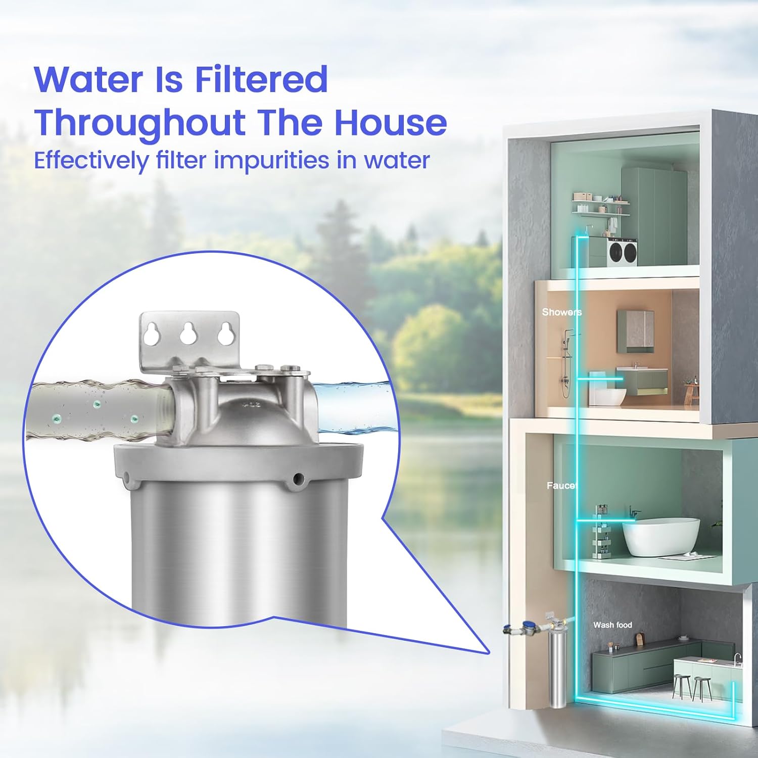 | Product Benefits | The stainless steel filter housing is made of non-toxic material for durability and corrosion resistance and facilitates quick and easy installation. Double O-rings ensure perfect water tightness and no leaks. |