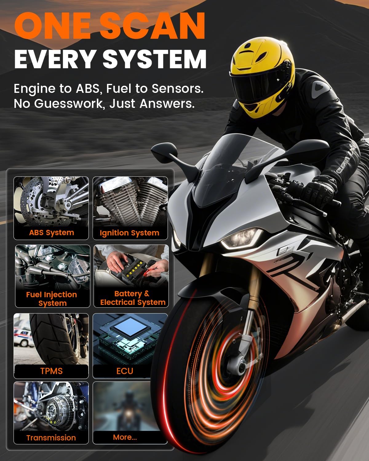 | Included Components | 1* 12V 2A DC Power Adapter, 1* MT500 PRO Motorcycle Diagnostic Tool, 1* OBD2 Main Cable, 1* User's Manual, 9* Adapter Cables |