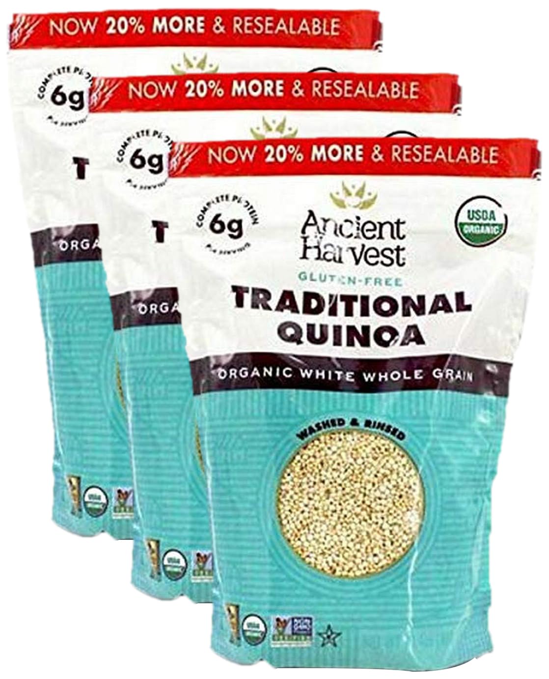 Cooks in 10-15 minutes. Wheat free; gluten free. USDA Organic. Quinoa contains more high quality protein than any other grain. The National Academy of Sciences calls it one of the best sources of protein in the vegetable kingdom. Quinoa stands alone as a complete protein grain. It provides all the essential amino acids in a balanced pattern, close to the ideal set by the United Nations Food and Agriculture Organization. Quinoa contains no gluten. This makes quinoa the perfect food for people who follow a wheat free/gluten free diet. Quinoa is light, tasty and easy to digest. This delicate grain is much less filling than most other grains and pasta, and has a delicious nutty flavor all its own. Quinoa is quick and easy to prepare. Perfect for today's active lifestyle, quinoa can be served as a side dish; in soups; in salads; as a pilaf; even as a nutritious breakfast cereal. Country of origin: Bolivia.