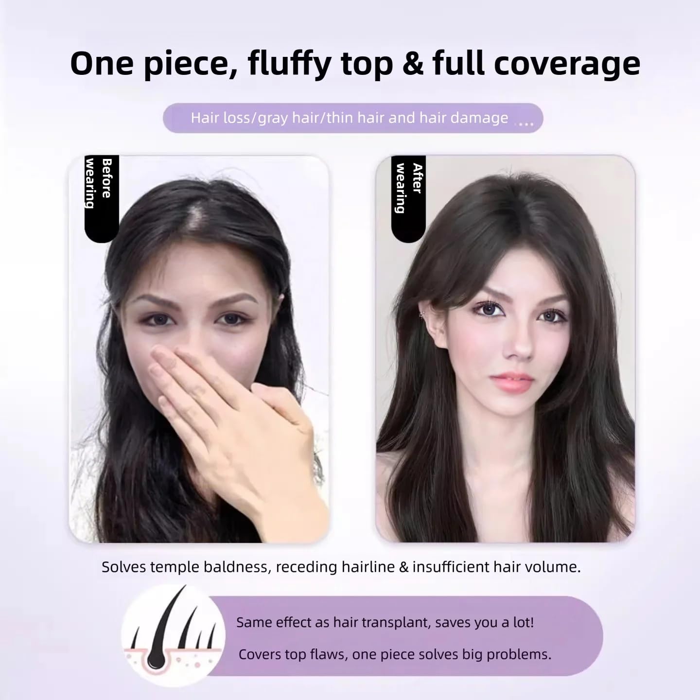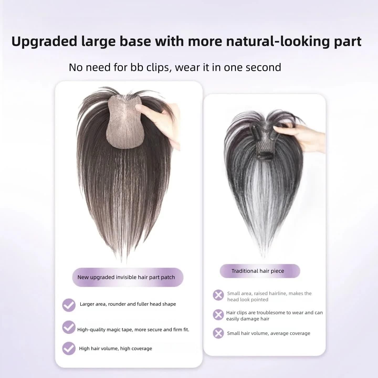 Tired of visible gray hair, wide hair parts, or thin hair that lacks volume? Our newly designed hair fringe piece is here to solve your worries—combining natural texture, easy wear, and an undetectable look for everyday confidence. Made from 100% real human hair, this fringe piece feels soft, smooth, and identical to your own hair—no shiny synthetic fibers or unnatural stiffness. At just 20g, it’s so lightweight you’ll forget you’re wearing it, while the breathable design prevents scalp overheating even during long hours of wear. The innovative magic tape installation (no clips needed!) makes styling a breeze: simply position the 3.15×4.33-inch tape along your hairline, press gently, and you’re ready to go—no skills or tools required. Unlike clip-in alternatives, it won’t pull or damage your hair/scalp, making it perfect for those with sensitive scalps or fragile hair. What sets this fringe apart is its invisible design: a middle part with a scalp-matching part line, plus a skin-tone V-shaped hand-woven net at the forehead. The non-adhesive net blends seamlessly with your skin, hiding the hair piece’s edges so effectively that even up close, no one will know you’re wearing a hair topper. Choose from Black or Dark Brown to match your natural hair color, and pick between French Bangs or Middle Part Bangs to suit your style. Whether you’re rocking loose waves, a sleek ponytail, or a casual bun, this fringe piece integrates flawlessly—covering gray hair, filling in wide parts, and adding natural volume. Please note: For optimal performance, avoid using in strong winds or while swimming (magic tape is less secure than clips). With proper care, this real human hair fringe will maintain its softness and natural look for long-term use. Elevate your hairstyle effortlessly—confidence has never been this easy to wear!