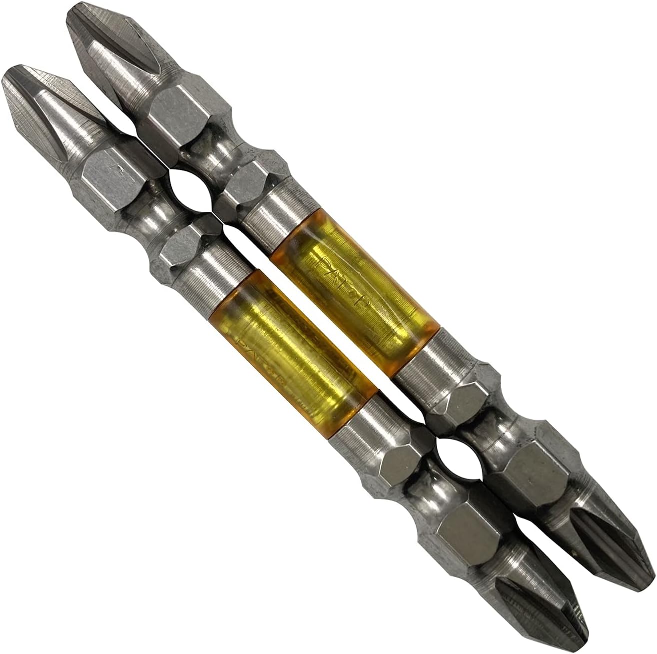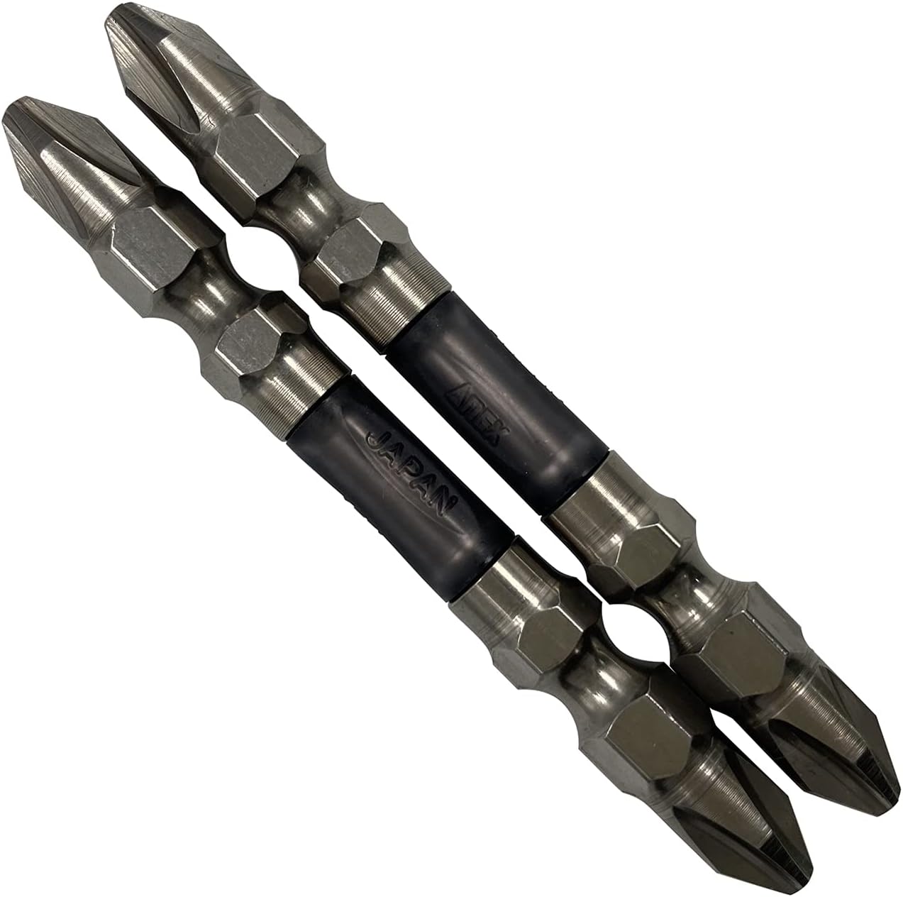 Torsion part absorbs shock and prevents cam-out. Strong and durable. Double head type with strong tip. Set Quantity: 5 Shape: Double head Tip Size: Plus (+2) Total length: 5.1 inches (130 mm) Groove position: 0.5 inches (13 mm) Shaft diameter: 0.25 inch (6.35 mm) hexagonal shaft Surface treatment: barrel treatment Magnet: Yes. Packaging: Card/Blister Pack