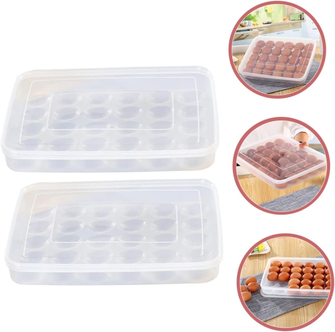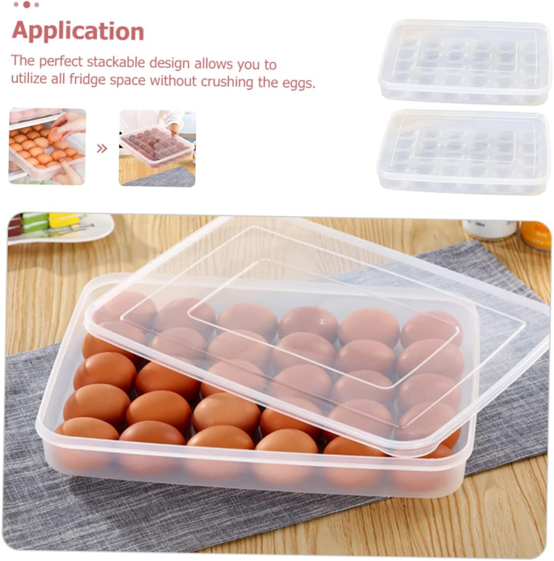 Package List 2 x egg storage boxes Features - Color: Transparent Stackable Egg Box. - Material: Plastic Refrigerator Egg Container. - Size: 34.50X26.00X4.00cm/ 13.56X10.22X1.57inch Refrigerator Egg Holder. - The clear egg trays in design well protects your eggs against getting crushed Fridge Egg Storage Cases. - The perfect stackable design allows you to utilize all fridge space without crushing the eggs Freezer Egg Organizer Holder. - Made of food-grade -resistant plastic, with lid design, and durable Refrigerator Egg Storage Box. - The , compact design effortlessly fits into any refrigerator and place Freezer Egg Box. - Suitable for refrigerator, kitchen countertop, freezer, fridge, kitchen cabinets Refrigerator Egg Box.Goods InformationRefrigerator Egg Holder Egg cases can prevent collision fragile, easy to move, can be put in the refrigerator to refrigerate, convenient to use.plastic trays This is egg holder, which is made of plastic materials, durable and can be used for a long time.plastic serving tray It can be placed in refrigerator to keep eggs fresh