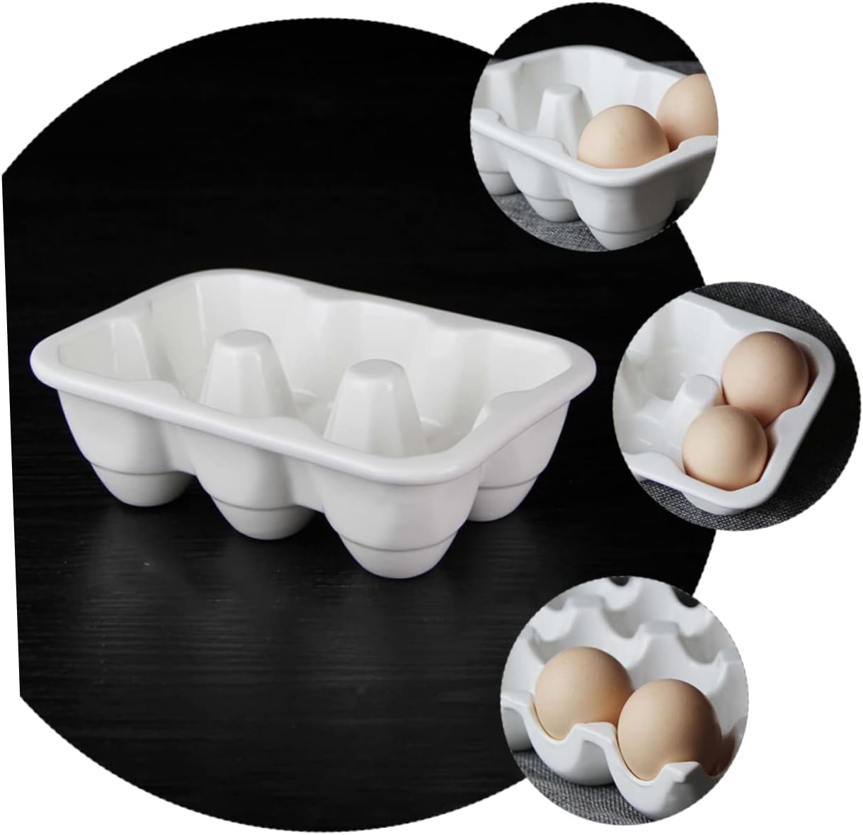 Package List 1 x egg tray Characteristics - Material: Ceramic farm egg holder. - Size: About 16.50X11.00X5.00cm/6.48X4.32X1.97inch eggs ceramic holder. - Color: White egg serving. - Suitable for placing eggs in the refrigerator in the kitchen, and also for cooking white. - 6-compartment tray, can hold multiple eggs at one time egg storage tray. - High-end products, simple and fashionable for home kitchen use egg holder ceramic. - , safe and egg holder 6 blue pocelain. - The product is white high-temperature strengthened porcelain, authentic quality holder.Goods Informationjewelry organizer for drawer And flat bottom design allows the egg holder can be placed on the table stably.deviled egg platter ceramic This storage tray is specially designed for holding eggs, with 6 grids, your eggs will not press each other and broken.6- cup Besides, it is easy to put and take out eggs