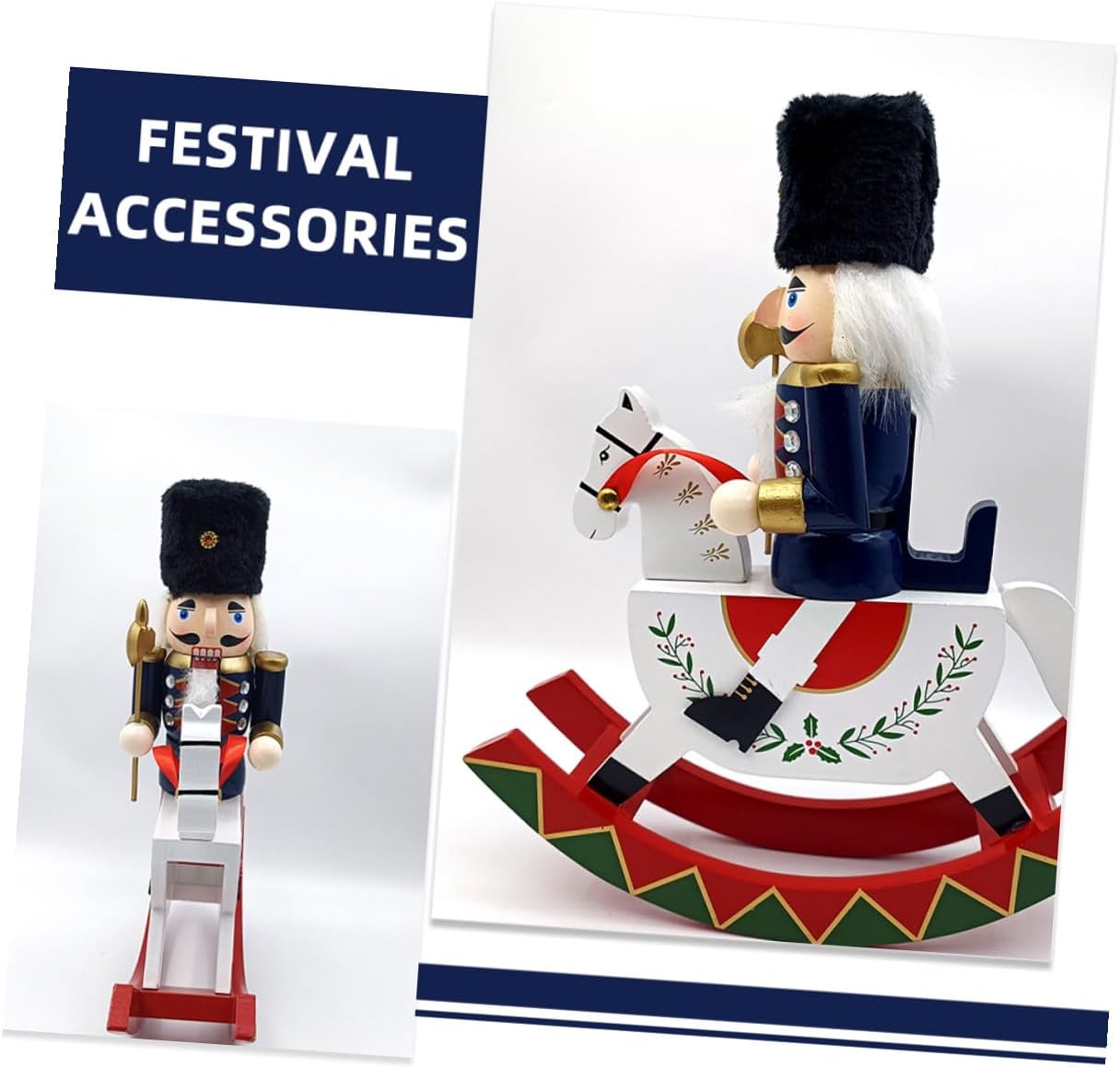 Package List 1 x wooden horse nutcracker Features -Great for christmas: this nutcracker makes a ideal christmas present, offering a unique and charming decoration that will be cherished by friends and family nutcracker ride horse -Elegant holiday decor: this rocking horse nutcracker is an elegant addition to your christmas decorations, bringing a festive and joyful atmosphere to your home nutcracker figures puppet -Material:Wooden -Distinctive soldier design: with its royal soldier design, this ornament is a distinctive and eyecatching piece that enhances any holiday decor wooden nutcracker statue -Handmade detail: each piece is handmade with care, ensuring craftsmanship and attention to detail in every nutcracker nutcracker table decor - Size: 30.50X26.00X9.20cm/11.99X10.22X3.62in -Product Info:Nutcracker ornaments -Ideal for various spaces: ideal for placement on desks, shelves, and other surfaces, this decoration adds a vibrant and festive touch to any area wood nutcracker soldiers - Goods Descriptionvintage christmas nutcracker Enhance your holiday decor with these traditional wooden nutcracker statues.christmas desktop nutcracker Whether you place them on your fireplace, use them as a nutcracker table centerpiece, or hang them as xmas tree ornaments, they bring a nostalgic charm to your home.nutcracker puppet doll These nutcracker dolls figures are also ideal for creating a vintage Christmas theme